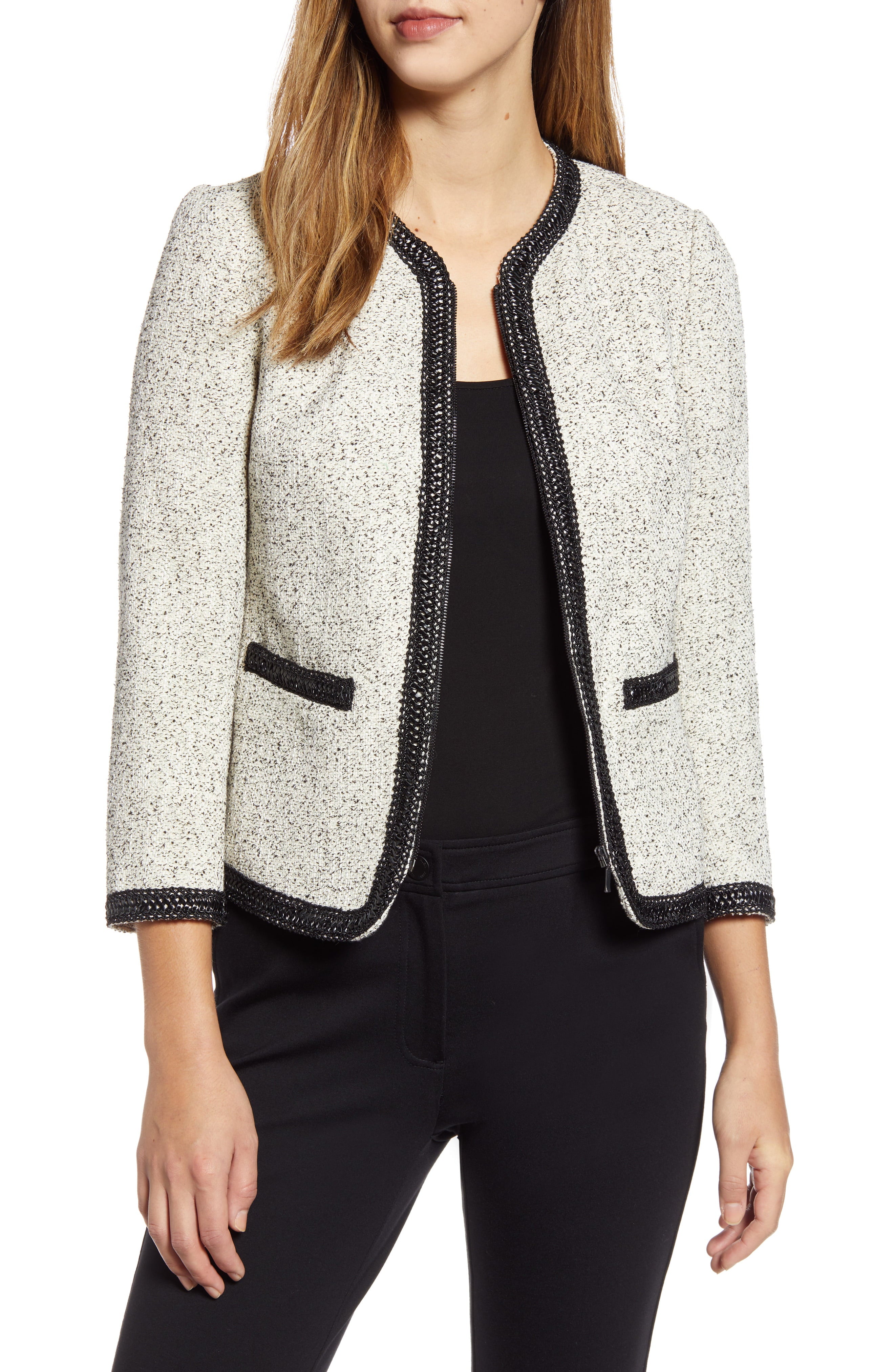 Front zip closure|Round neck|Bracelet sleeves|55% cotton| 45% polyester|Dry clean|Imported