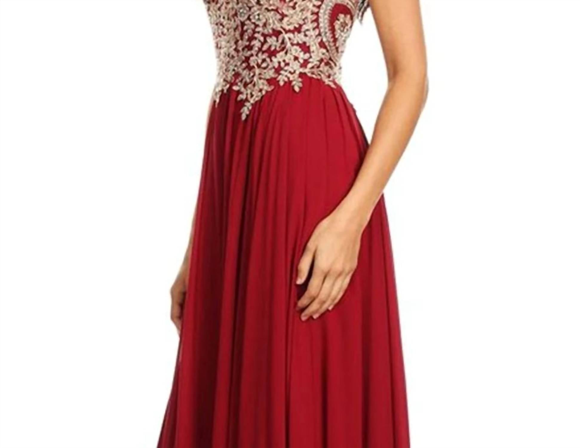 Turn heads in the cutest and most flattering evening dress. Meet the Chiffon Ballgown by Anny Lee, a stunning choice for your next prom event in rich burgundy. This sleeveless dress boasts a halter neckline with a keyhole cut, complemented by a fitted bodice adorned with delicate floral lace appliqués. With its pleated A-line silhouette, the dress gracefully flows down to touch the floor. Closure: Zip closure. Care: Dry clean only. Perfect for a memorable occasion.
