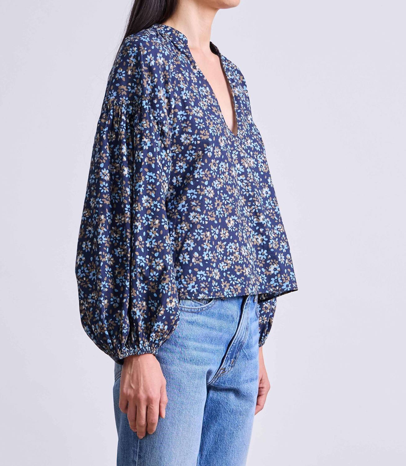 A timeless blouse that will never go out of style. Discover the Anfa Shirred Top by Apiece Apart, a stunning piece designed to elevate your summer wardrobe. This women’s blouse features long sleeves and a flattering V-neckline, showcasing a vibrant Gia Ditsy floral pattern. Crafted from 100% organic cotton and made in India, it ensures comfort and style with a relaxed, true-to-size fit. Closure: Pull-on style. Care is easy with hand wash and lay flat to dry instructions.