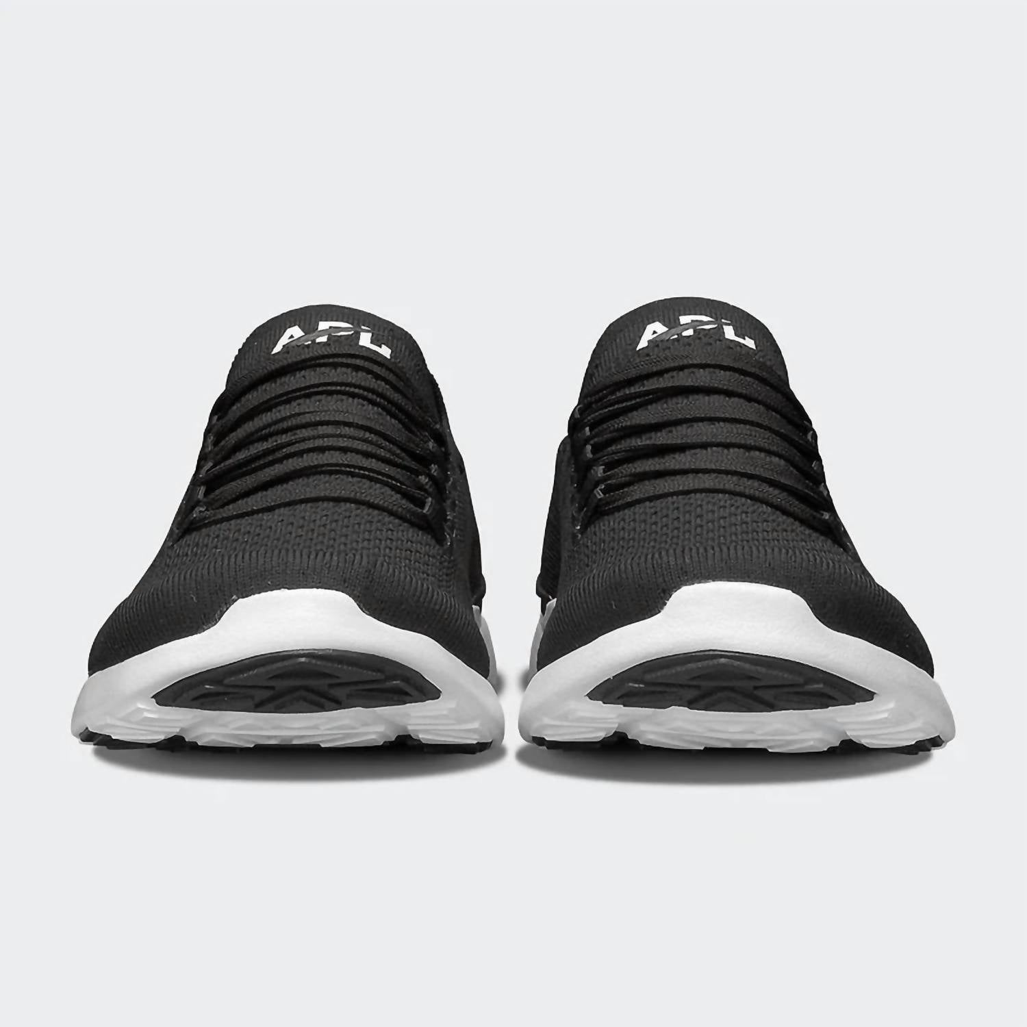 When fashion and function come together seamlessly. Featuring a seamless, high-elastic TechLoom upper, these sneakers ensure extreme stretch and a secure fit with an internal speed lacing system and exposed eyelets. Weighing only 6.8 oz in a Women's size 7.5, they're the lightest APL running shoes yet, boasting a Propelium™ midsole that maximizes energy and provides superior comfort. Made with a durable rubber outsole and a forefoot crash pad, these shoes are 100% vegan and feature an 8mm heel-to-forefoot drop for efficient running.