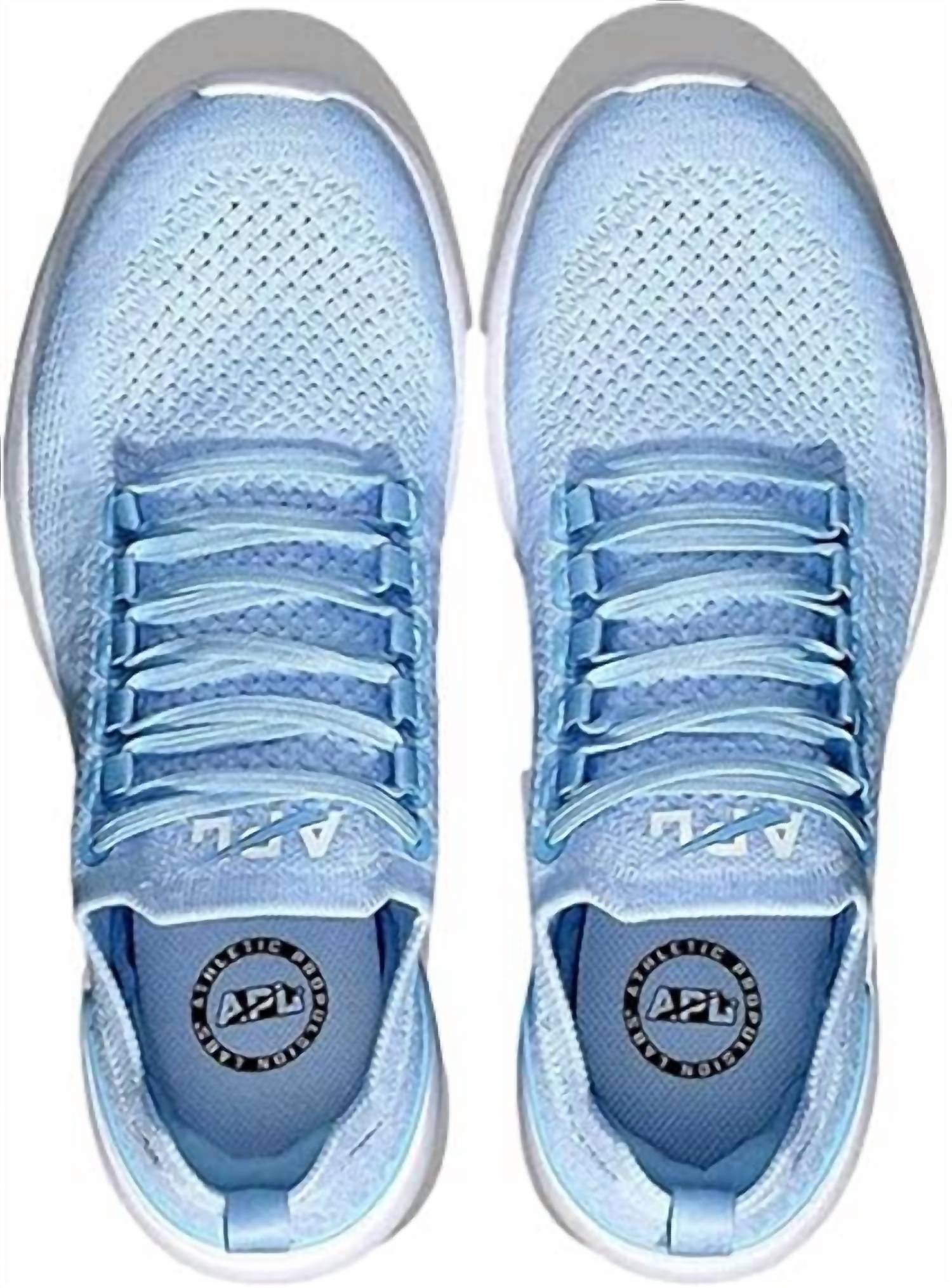 When fashion and function come together seamlessly. Elevate your workout wardrobe with the Women's Techloom Breeze Shoe by APL, designed for both style and performance in an ice blue/white/melange colorway. These athleisure sneakers feature a flat heel height of 1" and under, making them perfect for fitness and workout sessions. Ideal for the spring season and versatile enough to wear for Thanksgiving gatherings, these shoes boast a round toe shape for added comfort. Embrace the latest trends with APL's innovation in footwear, crafted specifically for the modern woman.