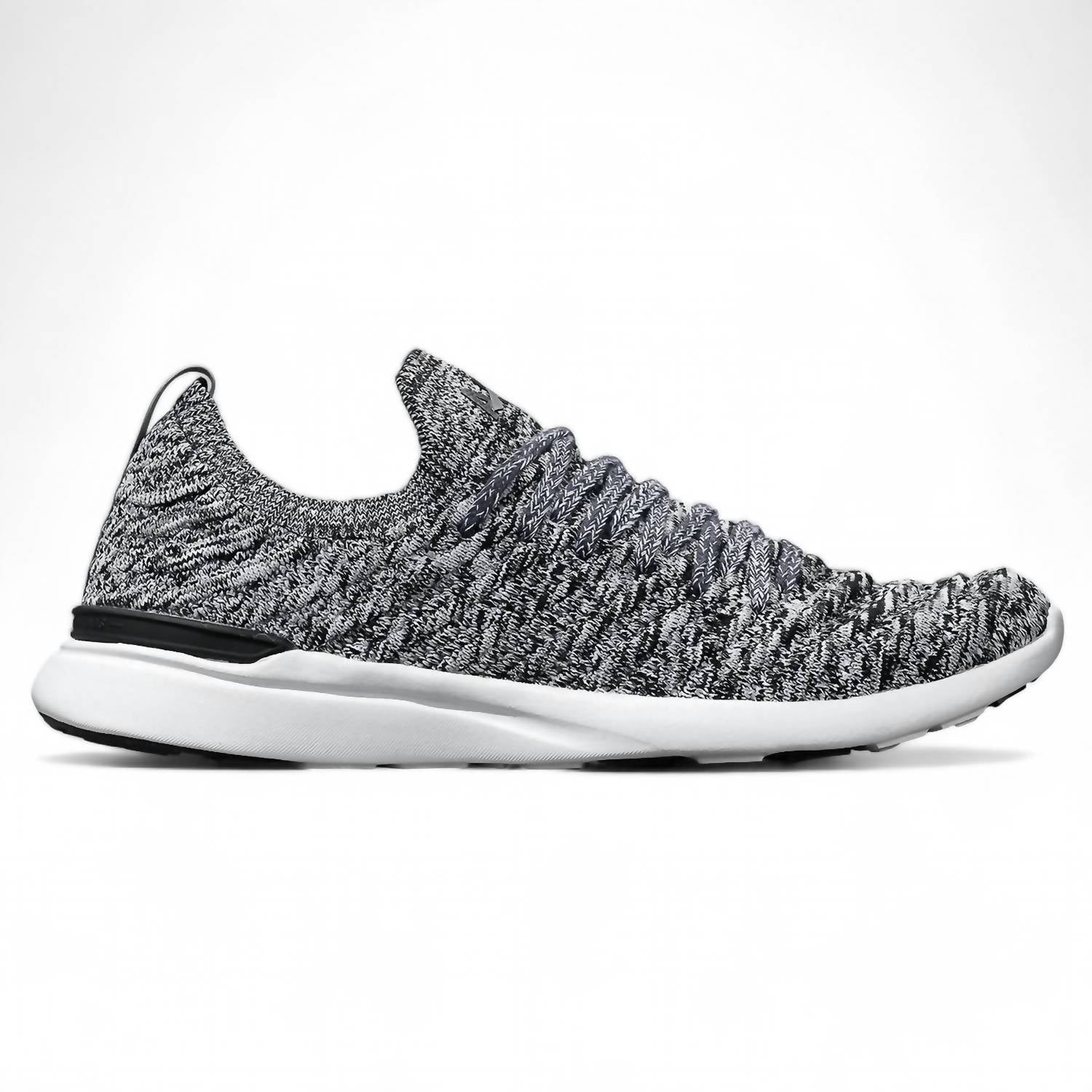 The women's Techloom Wave sneaker features a stretchy 3D upper that moves with your feet and ventilation zones to keep them cool. An internal cage offers support and a customizable fit, with a convertible design that allows lace removal for slip-on wear. The Propelium™ midsole delivers lasting comfort and energy return, paired with a durable rubber outsole and an 8mm drop for natural, efficient running.