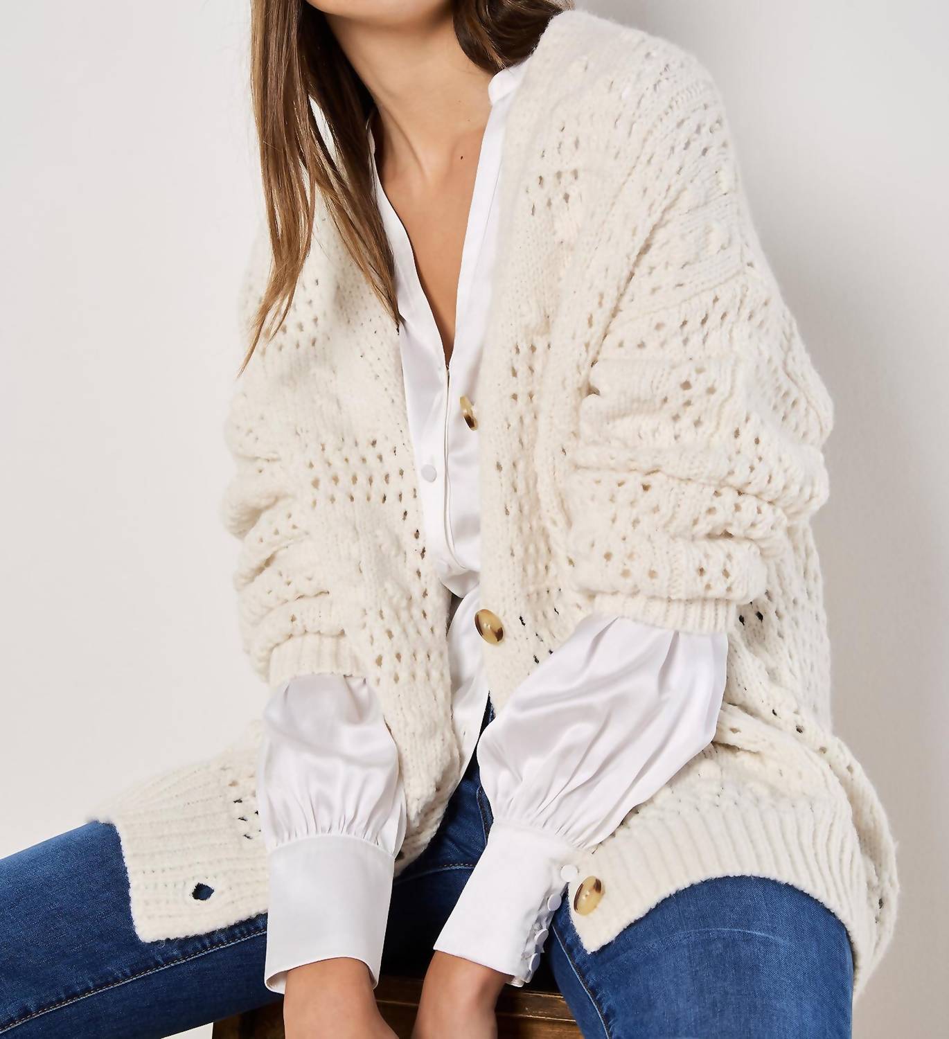 This elegant white top boasts long balloon sleeves with buttoned cuffs and a flattering V-neckline. Crafted from a soft blend of 54% Polyester and 46% Viscose, it offers a relaxed fit with a curved, dipped hem measuring approximately 26.4 inches in length. Made in Vietnam, it features a button closure and can be easily maintained with machine wash care. Model is wearing size XS/UK 8 (5'9" tall).