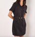 Elevate your style with the Charlotte Mini Dress by APRICOT, designed in a sleek black hue for a minimalist look. Featuring short sleeves and crafted from a cotton blend (56% cotton, 42% lyocell, 2% elastane), this A-line dress offers both comfort and sophistication. The garment is enhanced with practical patch pockets and popper fastenings, making it a functional choice for your wardrobe. Closure: Button closure. Care: Machine wash. Perfect for a dinner party or Thanksgiving, this dress pairs beautifully with chunky boots for a utility-inspired outfit.