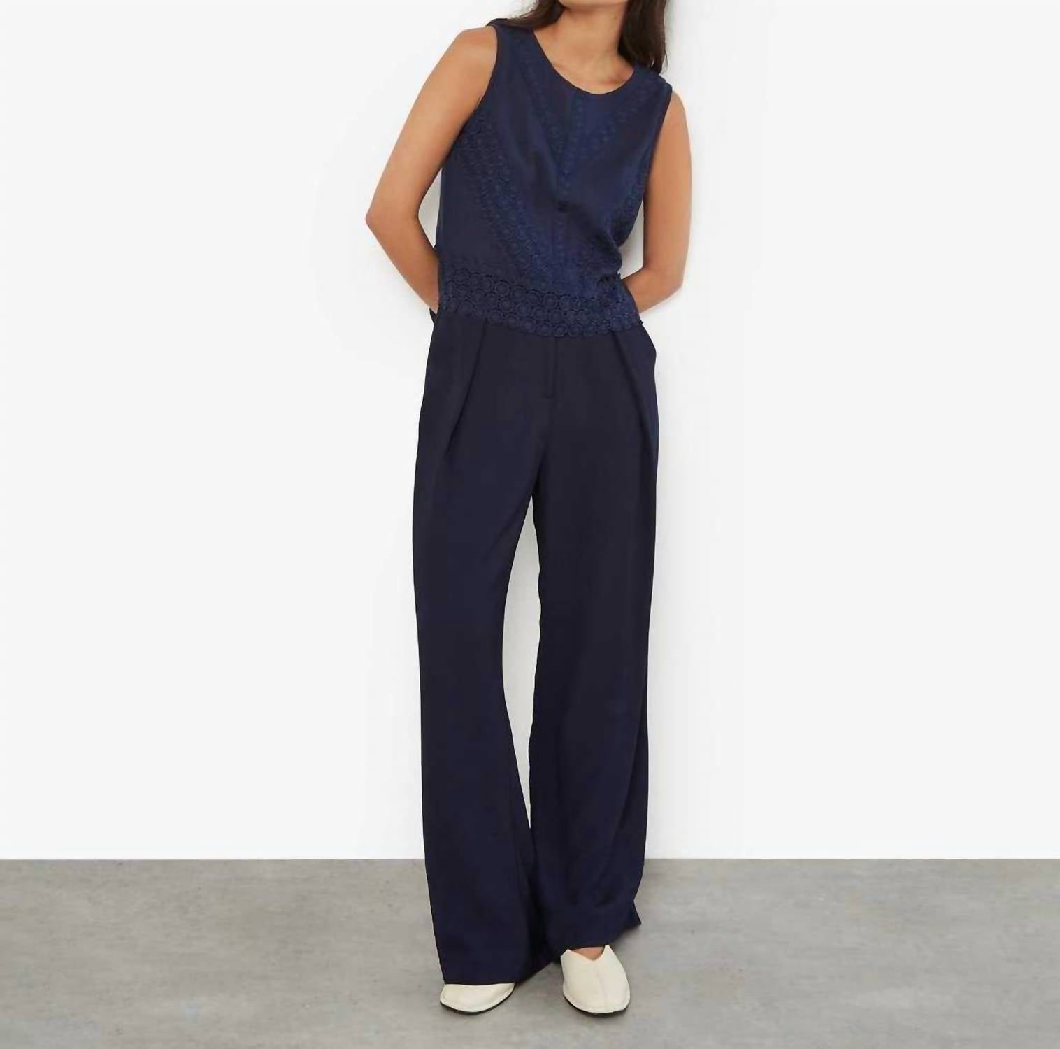 Elevate your style with the Lace Hem Back Bow Sleeveless Top by Apricot, perfect for those minimalist spring occasions. This sleeveless top crafted from poplin features delicate lace trims and a stylish back bow, offering a relaxed fit in a rich navy hue. Closure: Pull on. Care: Hand wash and lay flat to dry.