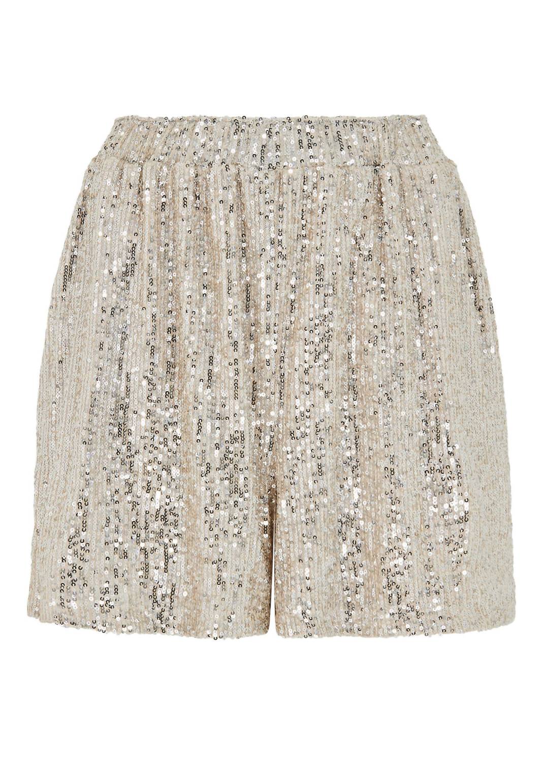 Fit to perfection, we love these high-waist shorts and you will too. Elevate your wardrobe with the Sequin Pullon Shorts by APRICOT, a dazzling addition in a chic champagne hue. Masterfully crafted from polyester, these high-waisted shorts offer a textured finish and functional pockets. The pull-on closure ensures ease and comfort, with a focus on style. Care: Dry clean and line dry for long-lasting brilliance.