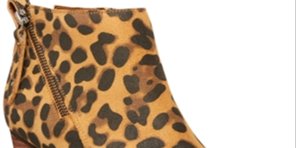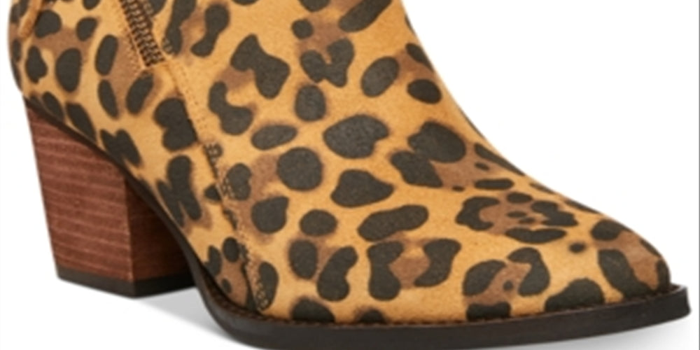 Aqua College Women's Animal Print Almond Toe Block Heel Zip up Leather Booties Leopard Size 8.5 M