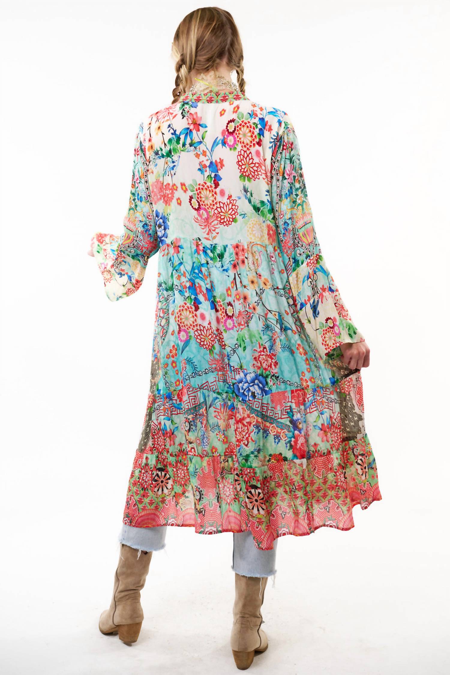 Just add slides or mules and you are good to go. Introducing the Alysia Floral Midi Dress by Aratta, a stunning addition to your wardrobe in vibrant coral and teal. This dress features long sleeves and a flattering A-line silhouette. Crafted from 100% viscose, it offers a comfortable fit with a stylish mockneck design. Closure: Pull on. Care Instructions: Hand wash and line dry for best results. Ideal for spring outings and festive occasions.