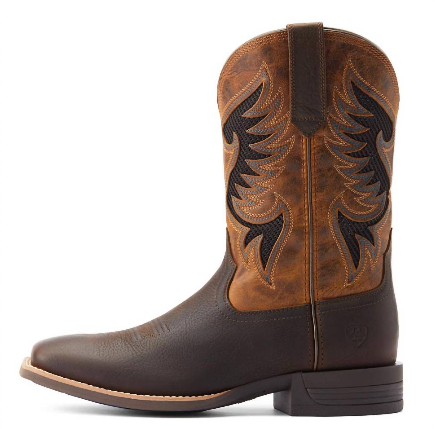 Built for the working cowboy, this boot combines advanced support and comfort technologies to keep up with long days on your feet or in the saddle. It features a full-grain leather foot, breathable mesh panels, and a removable anti-fatigue insole for all-day cushioning. The durable yet flexible sole is reinforced with double-stitch welt construction and a five-row stitch pattern for added strength. Designed to handle tough conditions while providing maximum comfort and stability.