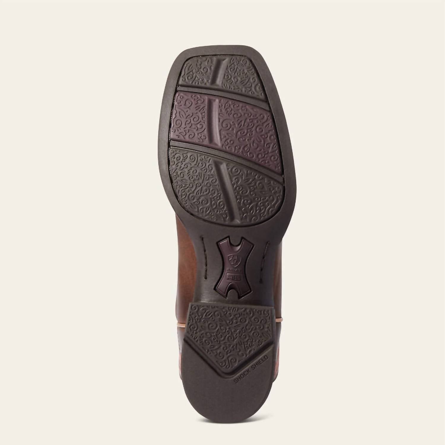 Step into the season with ARIAT Women's West Bound Western Boot in Sassy Brown, perfect for adding a touch of rustic elegance to your wardrobe. Crafted from quality leather, these ankle boots feature a squared toe and a block heel for comfortable yet stylish wear. Designed with a 1.5-inch low heel height, they are ideal for a fall vacation, embracing the timeless Western trend. Elevate your ensemble effortlessly with these chic and functional boots.