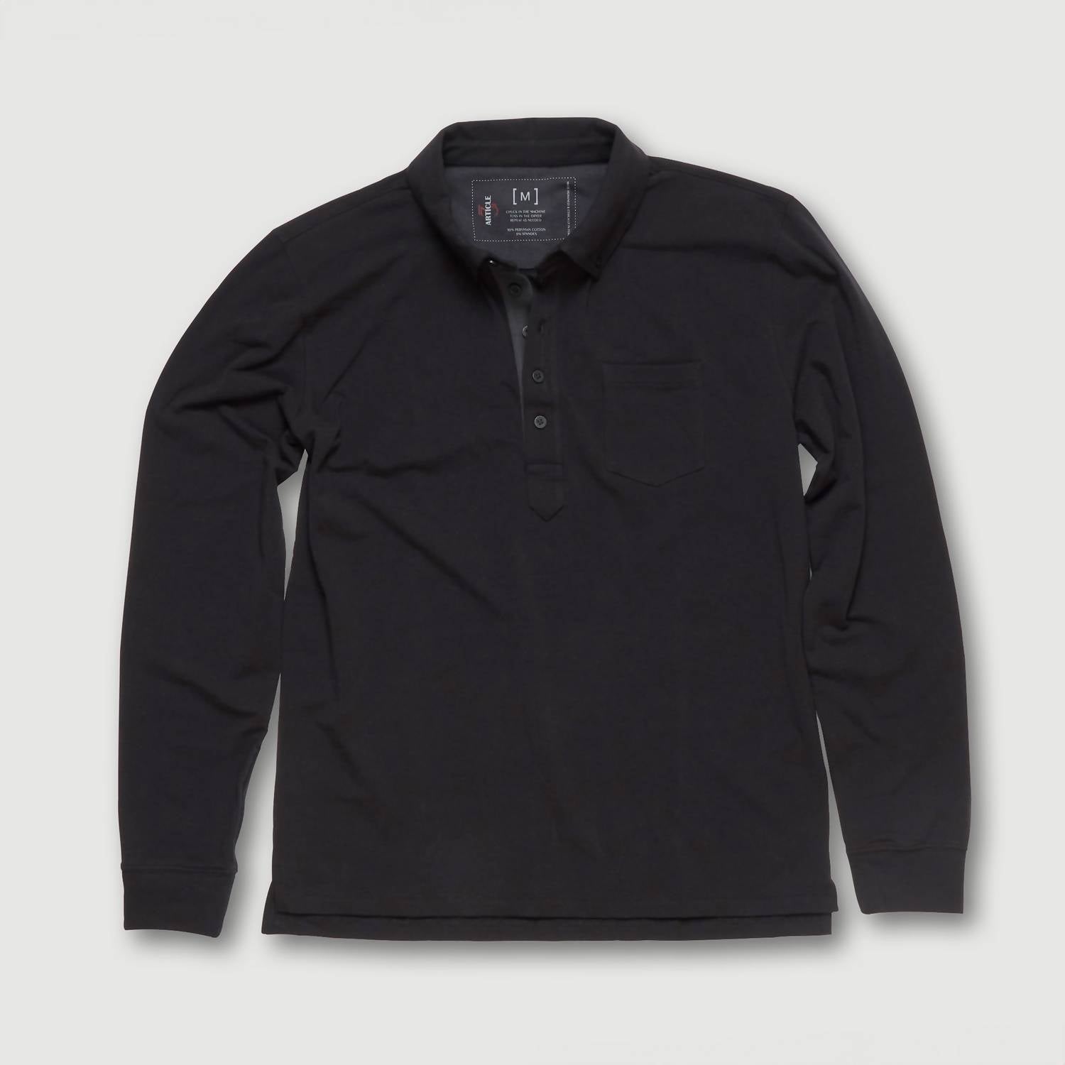 Introducing the Men's Giken Long Sleeve Polo by Articl3, a staple for modern, casual wardrobes. This black solid polo, crafted with a 98% Peruvian blended cotton and 2% Lycra, features a slim easy fit perfect for layering under a sport coat or wearing alone. The polo is equipped with pockets and a convenient button closure. Elevate your spring workwear with this versatile, engagement-ready piece.