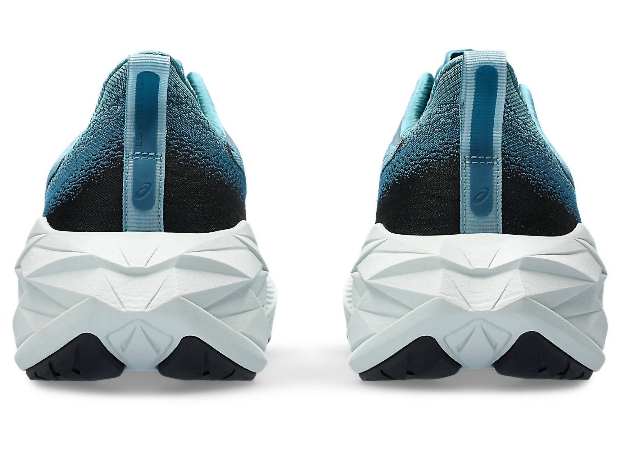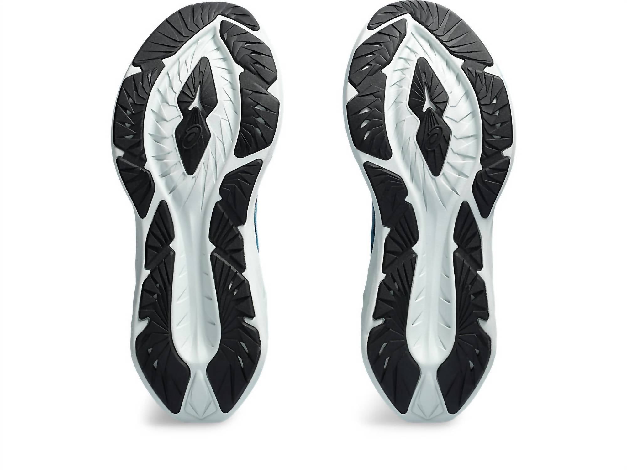 The ASICS NOVABLAST™ 4 (Style #1011B693-401) running shoe provides an energized ride with its new midsole and outsole design. It features an engineered woven upper for stretch, ventilation, and durability, with a tongue wing construction for an improved fit. The FF BLAST™ PLUS ECO cushioning, made with 20% recycled bio-based content, offers softer landings and a responsive toe-off.