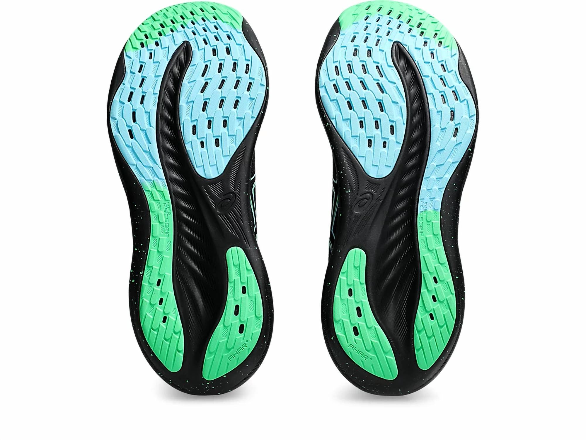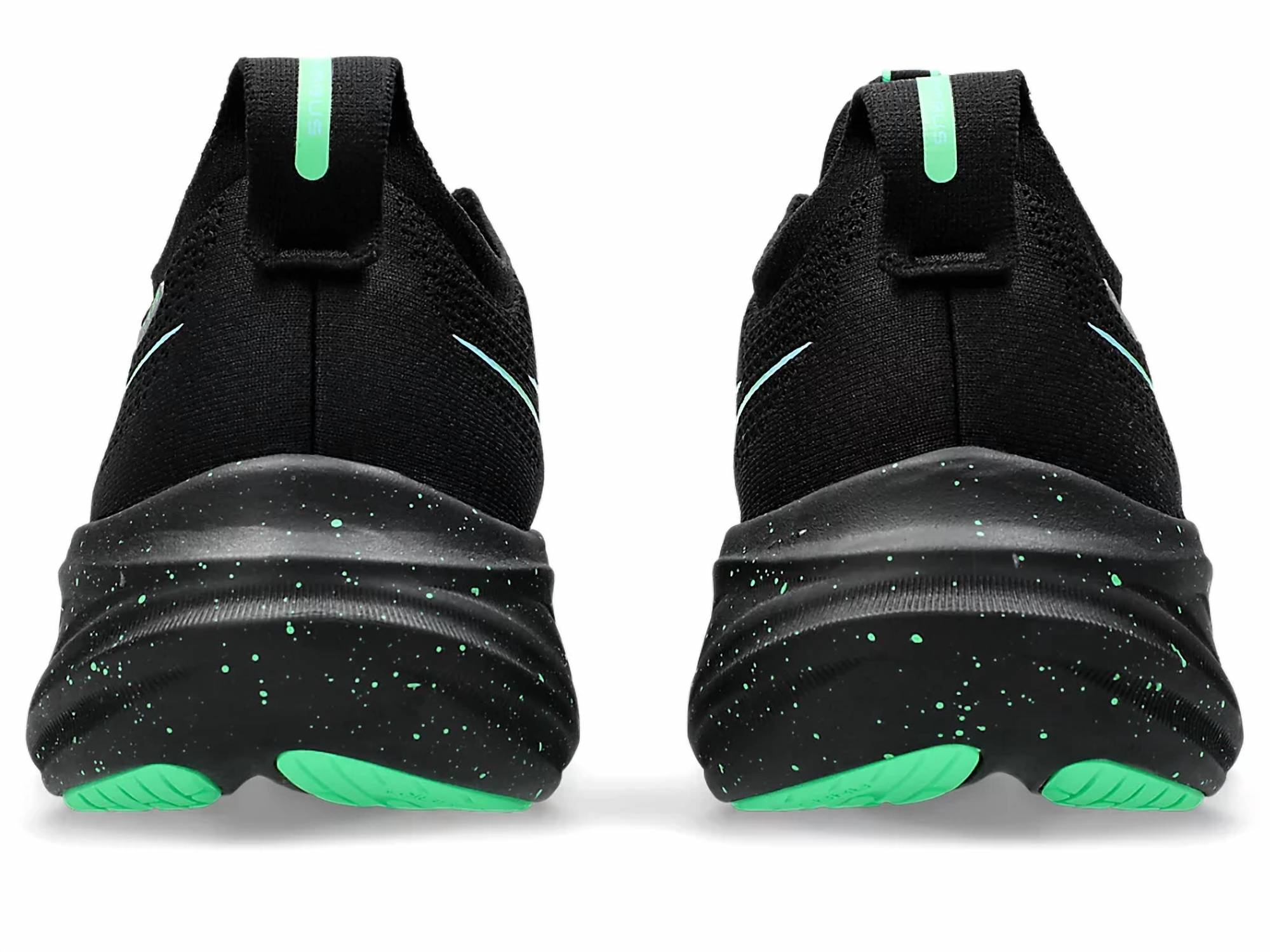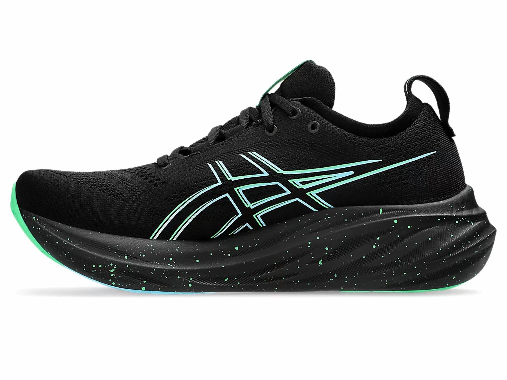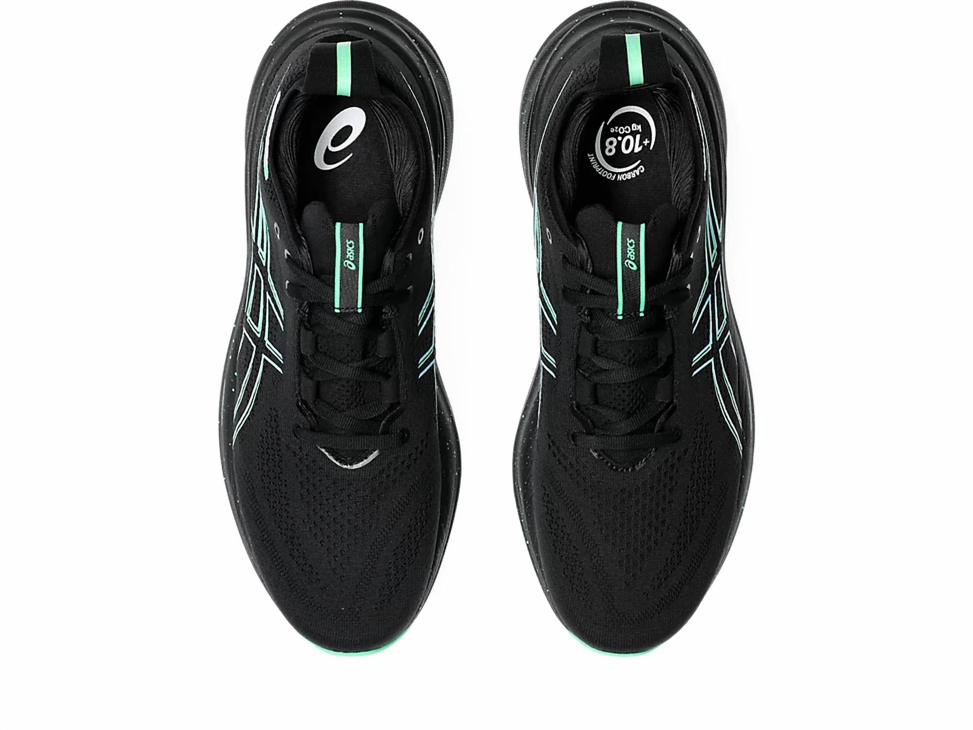 Introducing the ASICS Men's Gel Nimbus 26 Running Shoes in Black/Soothing Sea, crafted to elevate your running experience. The engineered knit upper embraces the foot with a soft feel and incorporates at least 75% recycled content to minimize waste and carbon emissions. PureGEL™ technology ensures lightweight cushioning, with FF BLAST™ PLUS ECO technology providing both softer landings and a responsive toe-off. The HYBRID ASICSGRIP™ outsole offers enhanced grip on various terrains. Designed with reflective details for better visibility, these shoes are perfect for medium-width adult men seeking comfort and performance.