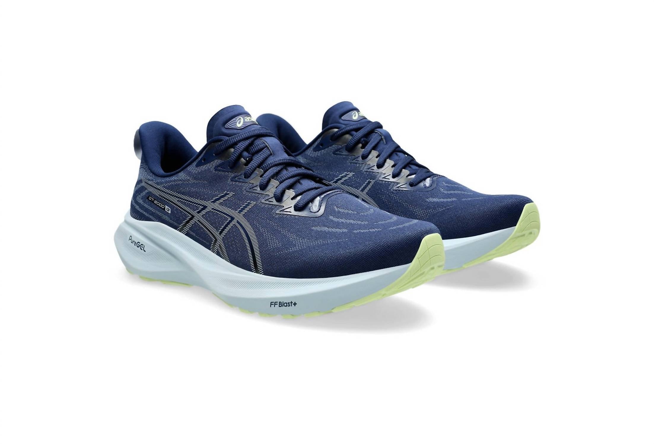 Introducing the ASICS Men's GT-2000 13 Running Shoes in Blue Expanse/Grey Blue, engineered for dynamic stability and exceptional comfort. These sneakers feature a jacquard mesh upper made with at least 50% recycled content, offering a supportive foothold while reducing environmental impact. The innovative 3D GUIDANCE SYSTEM and PureGEL technology provide adaptive stability and lightweight cushioning, ensuring a smooth stride. With a full-length FF BLAST PLUS midsole for energized toe-offs and an OrthoLite X-30 sockliner for soft comfort, these shoes are perfect for fitness and workout occasions. Reflective details enhance visibility, and the AHARPLUS heel plug rubber ensures durability. Heel drop: 8 mm. Weight: 275 g / 9.7 oz.