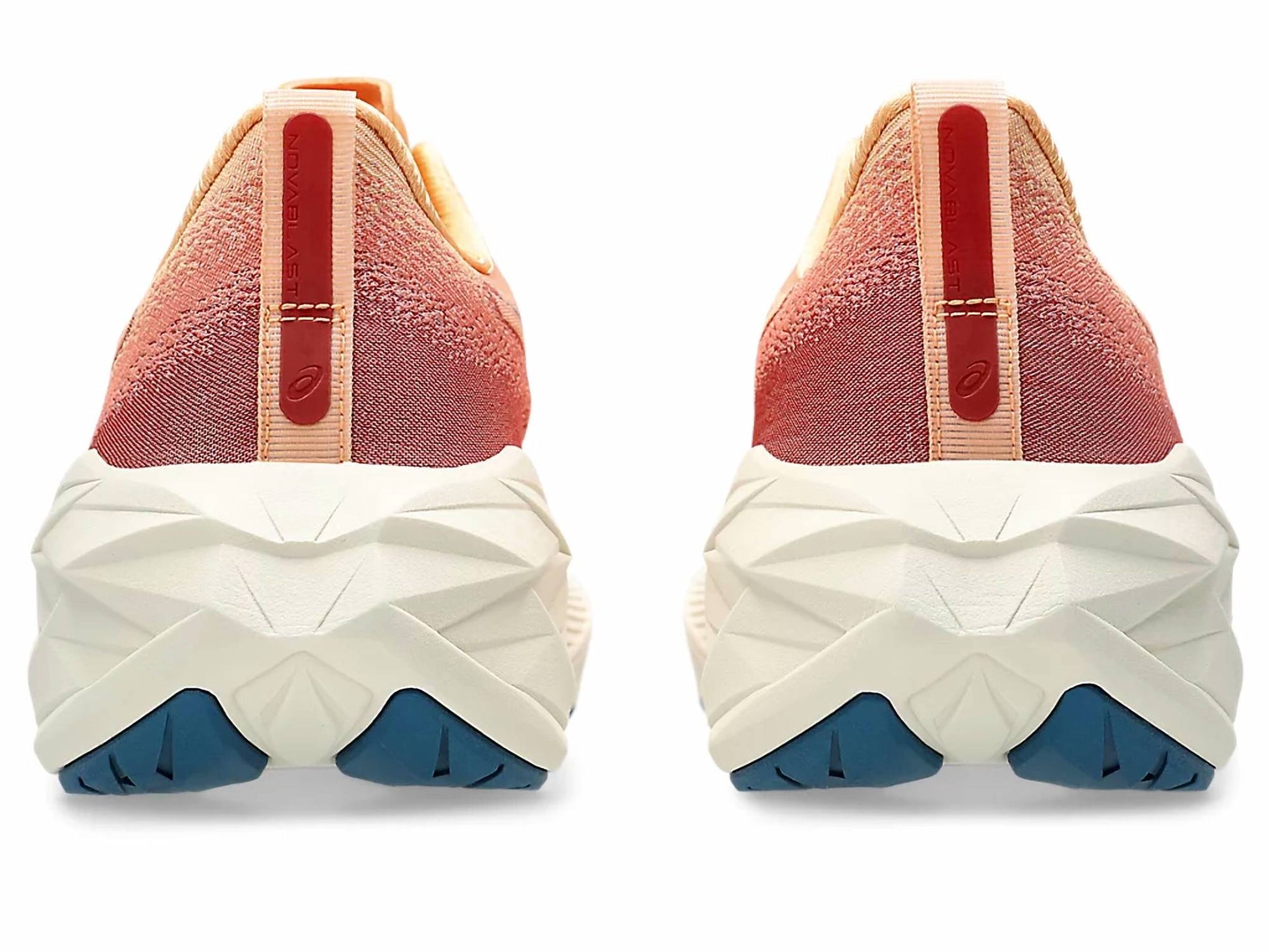 Step into performance with the Women's Novablast 4 Running Shoes by ASICS, carefully engineered in Faded Orange and Deep Red to boost your run. Featuring an advanced woven upper, these shoes offer exceptional stretch, ventilation, and durability. The gusseted tongue wing fit system enhances the midfoot fit, while the FF BLAST™ PLUS ECO cushioning provides luxurious comfort with its bio-based composition. Designed with a trampoline-inspired outsole for responsive bounce, these shoes incorporate a high percentage of recycled materials, reflective details for visibility, and an AHAR™ outsole for improved durability. Perfect for women seeking both style and functionality, these shoes cater to medium-width feet with a round toe design.