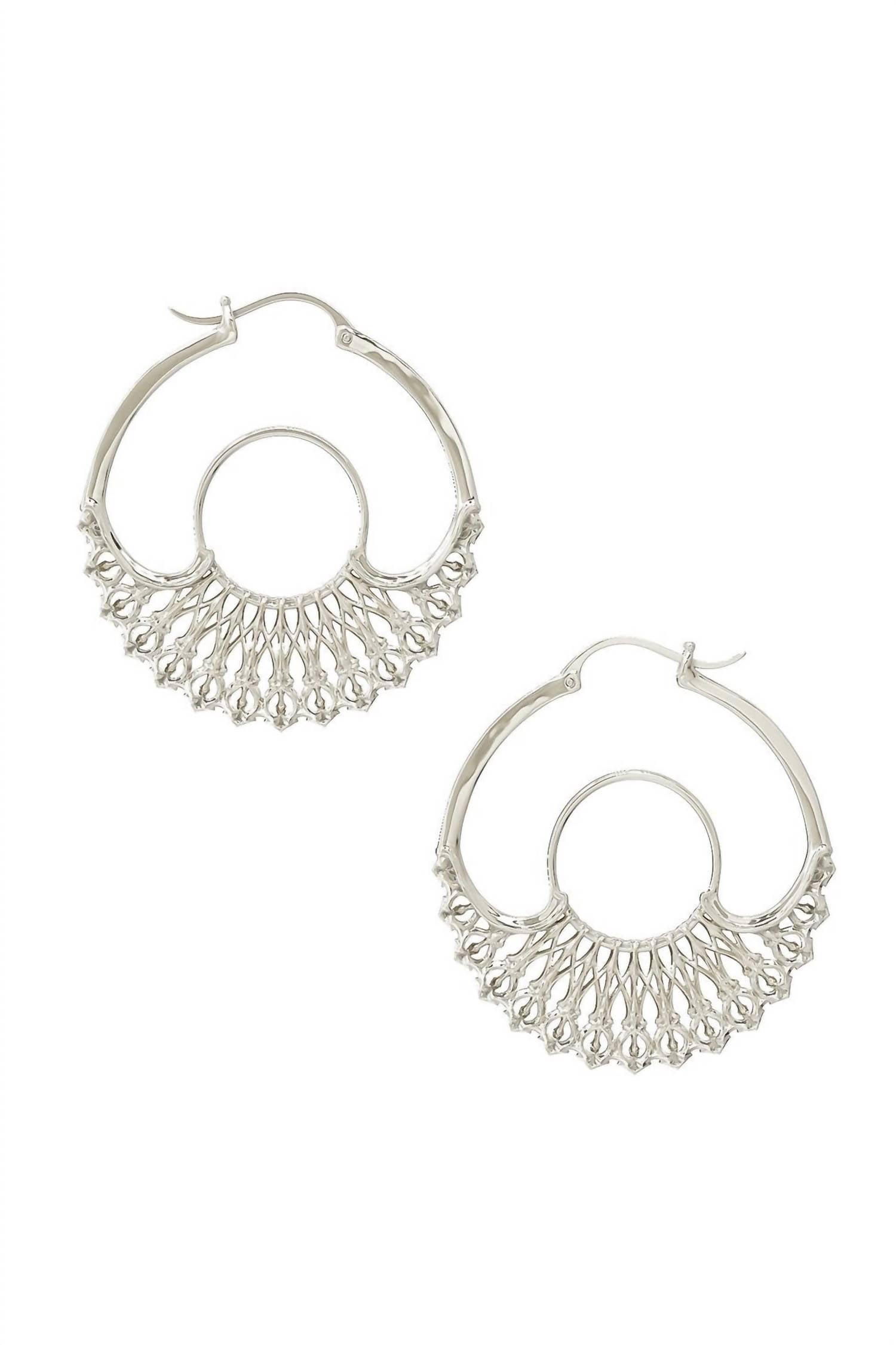 eye-catching earrings for every occasion. Discover the Women's Iris Small Hoops by Astor & Orion, an elegant expression of contemporary artistry. Meticulously cast from recycled jeweler's brass and enhanced with a heavy, hypoallergenic rhodium finish, these silver hoops measure 1.75 inches in diameter. Crafted with ethical practices, they reflect a commitment to both people and the planet. Elevate your fashion statement with these bold yet sophisticated earrings.