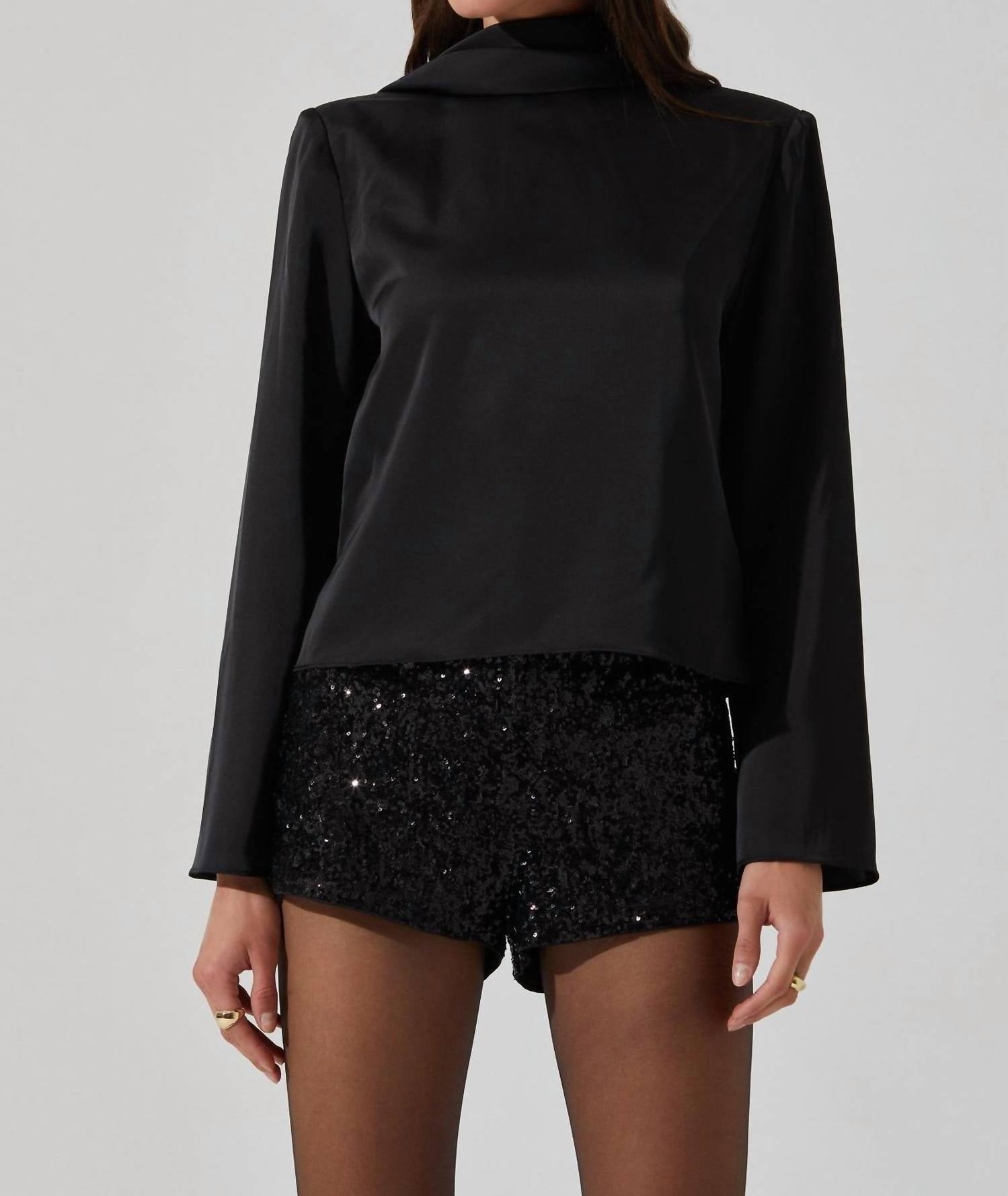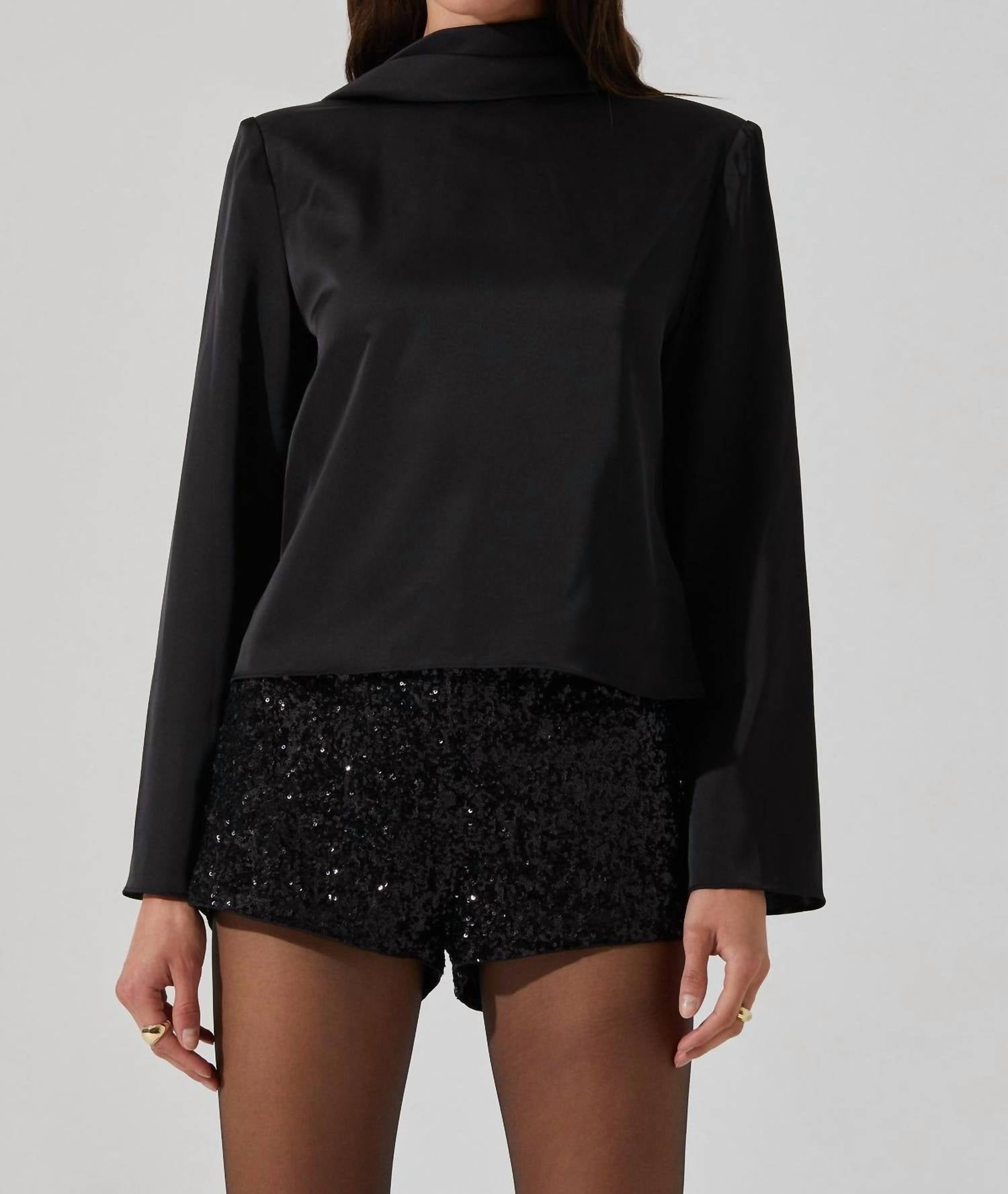 Pair this with your favorite jeans and slides for your next girls night out. Introducing the Bethwyn Satin Cowl Back Top by ASTR, a minimalist long sleeve blouse perfect for Thanksgiving holiday parties. Crafted from solid black polyester, it features a chic cowlneck design and a pull on closure for effortless wear. This women's top offers a fashionable 22.125" length, making it a versatile addition to your spring wardrobe. For optimal care, please dry clean only.