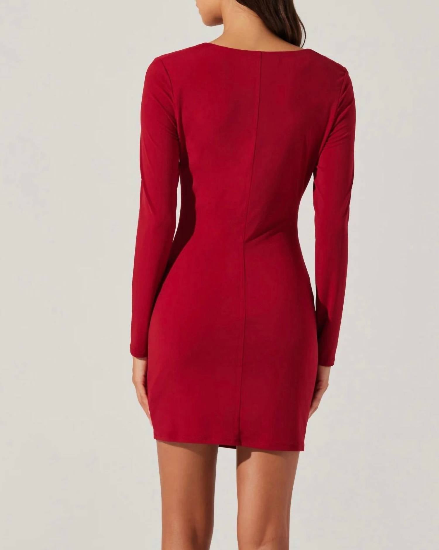 A short and breezy dress for those warmer days. Introducing the Cowl Neck Mini Dress by ASTR, a standout piece perfect for any evening event. This dress features long sleeves and a bodycon silhouette, crafted from a comfortable blend of 95% polyester and 5% elastane, with a full polyester lining. The pull-on design and slight stretch ensure a flattering fit in a striking red shade. Make a statement this Valentine's Day with a trendy, versatile look that embodies quiet luxury.