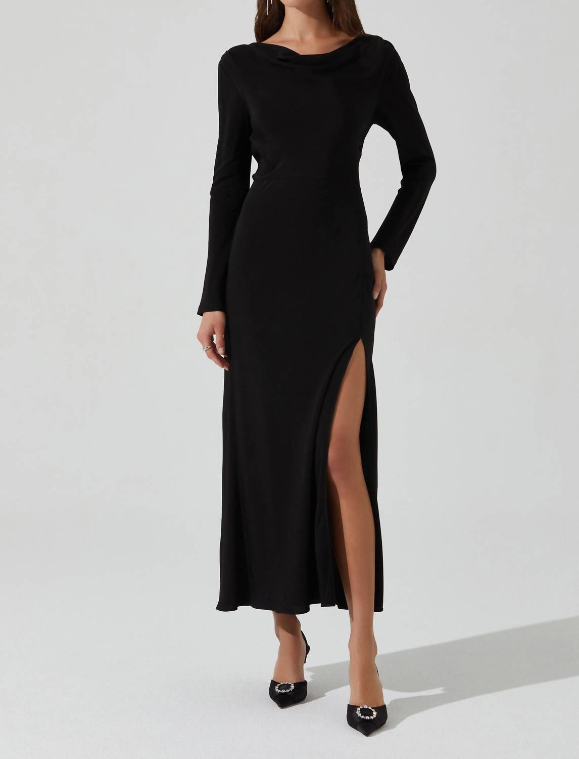 A maxi dress that is just as cute as it is comfortable. Introducing the Decima Cowl Neck Maxi Dress by ASTR, a sophisticated choice for spring events. This sheath dress, designed for women, features a stylized cowl neck and long sleeves, perfect for New Year's Eve or engagement parties. Crafted from luxurious viscose, it offers a sleek, solid black silhouette with a convenient pull-on closure. Care instructions recommend hand washing and laying flat to dry, ensuring longevity of this quiet luxury piece.