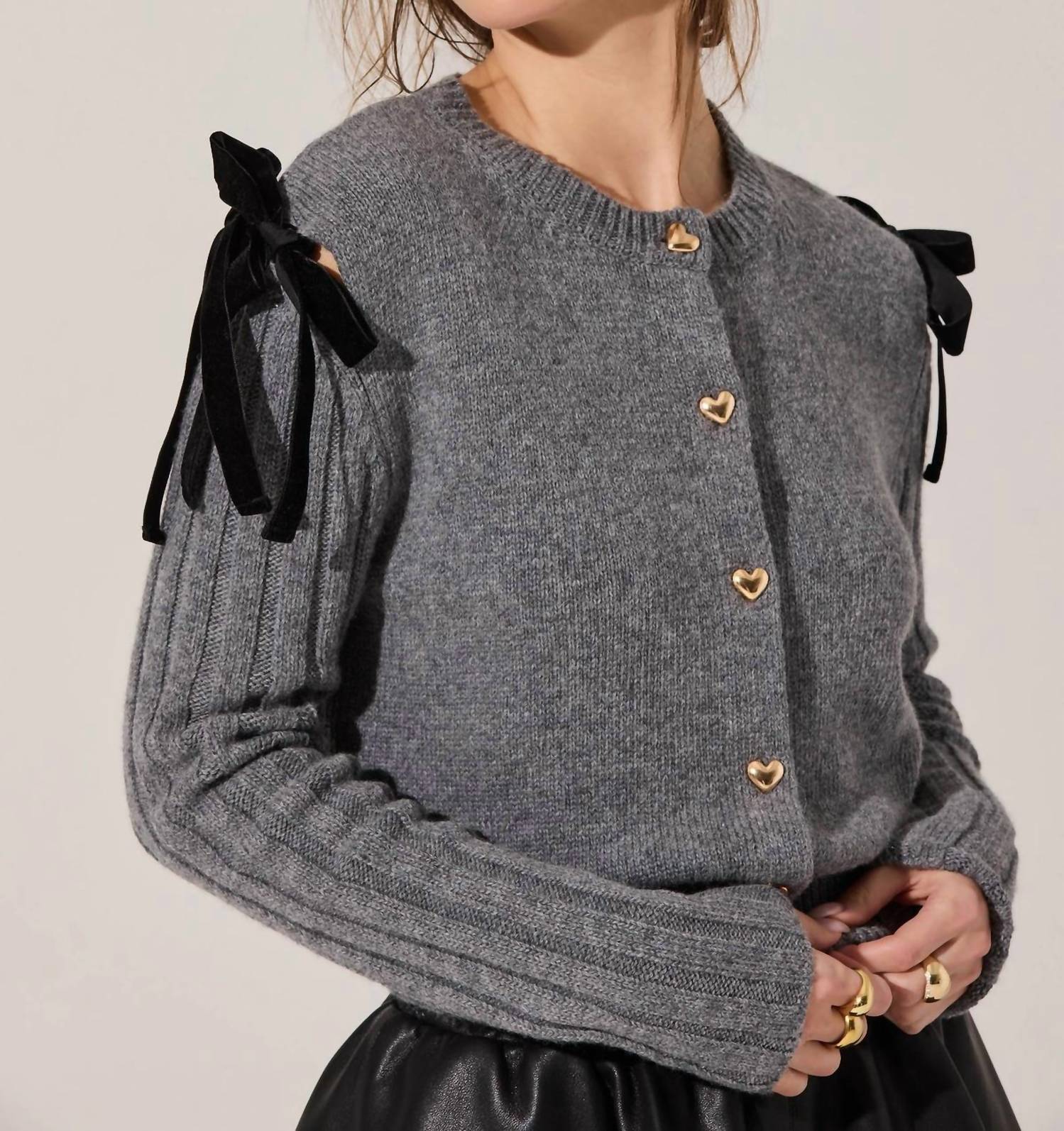 Introducing the Melvie Bow Detail Cardigan by ASTR, an elegant grey cardigan perfect for fall. Designed with long sleeves and a crewneck, this textured piece adds sophistication to your workwear ensemble. Made from 100% cotton, it features a full button-front closure for easy layering. Care for this beautiful cardigan by machine washing and laying flat to dry.