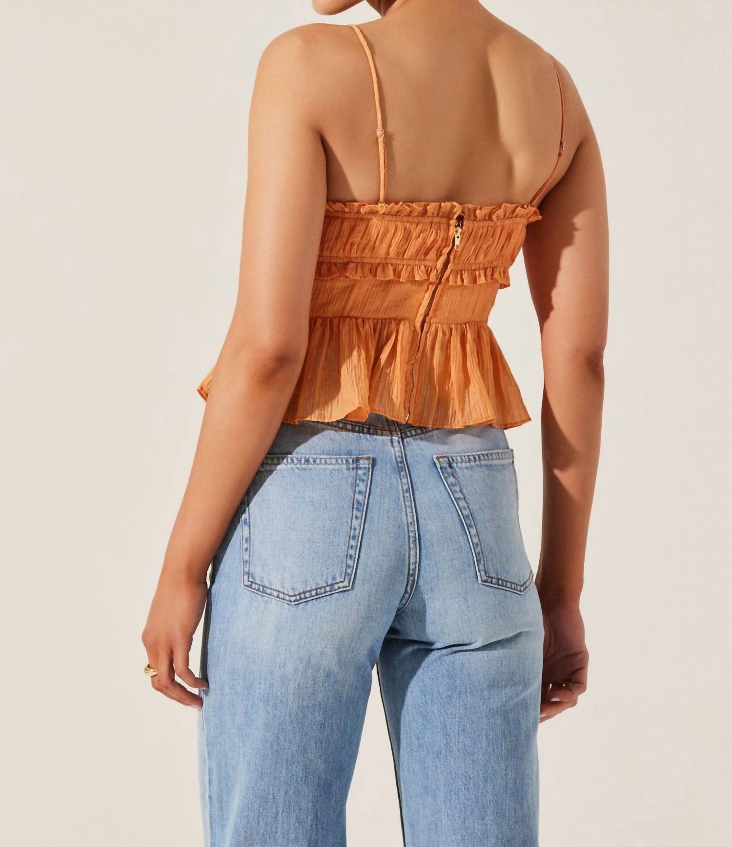 This classic tank top is perfect for layering and cute enough to wear on its own. Discover the Ruched Spaghetti Strap Top by ASTR, an ideal choice for warm summer days in a playful papaya hue. Crafted from textured Lyocell, this women's tank top features a stylish sweetheart neckline and ruched detailing. The minimalist design is enhanced with a practical zip closure, making it perfect for vacations and casual outings. For care, please dry clean only to maintain its quality and structure.