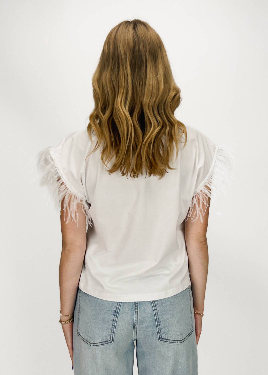 The short sleeve tee you'll want in every color. Enhance your wardrobe with the Reese Short Sleeve Top by ASTRID, a chic addition that effortlessly combines style and statement. This solid white top features feather-trimmed short sleeves, offering a touch of elegance perfect for a dinner party. With a convenient pull-on closure and a versatile crewneck design, this piece aligns with the quiet luxury trend. Designed for summer occasions, this top pairs seamlessly with vibrant bottoms.