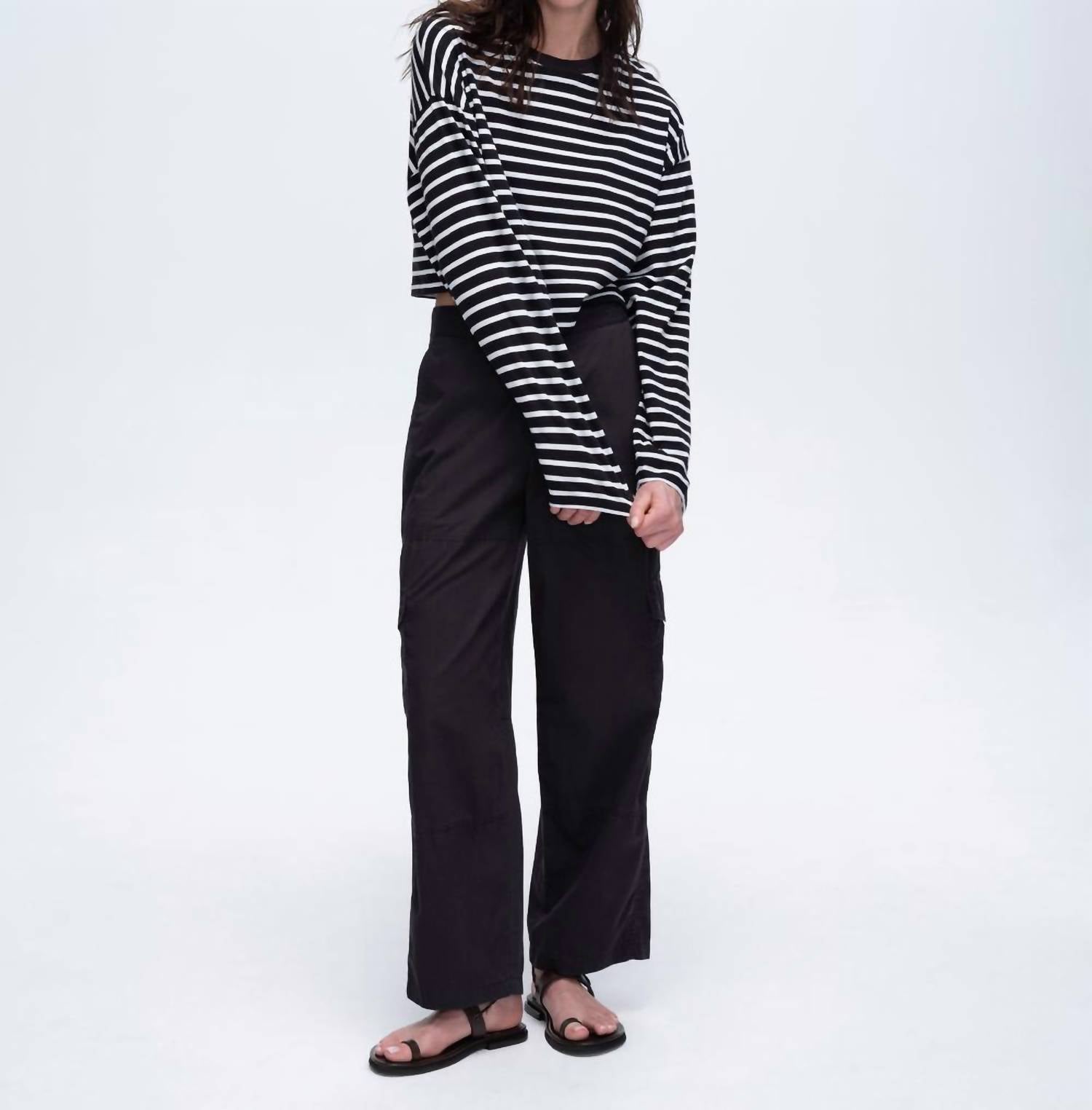 A straightleg pant that workes season after season. Dress these up with your favorite blouse or keep it casual with your go-to tee. The ATM Cotton Poplin Cargo Pants in Black offer modern utility with a streetwear edge, ideal for vacation chic. Designed with a straight leg in a solid pattern, these pants are crafted from 100% cotton, ensuring comfort and breathability for the summer season. Featuring functional cargo paneling, these pants include two front, two side, and two back pockets for a sleek yet practical look. Closure: Button closure. Care: Machine wash cold with like colors, gentle cycle, tumble dry low, warm iron if needed, do not bleach. Imported.