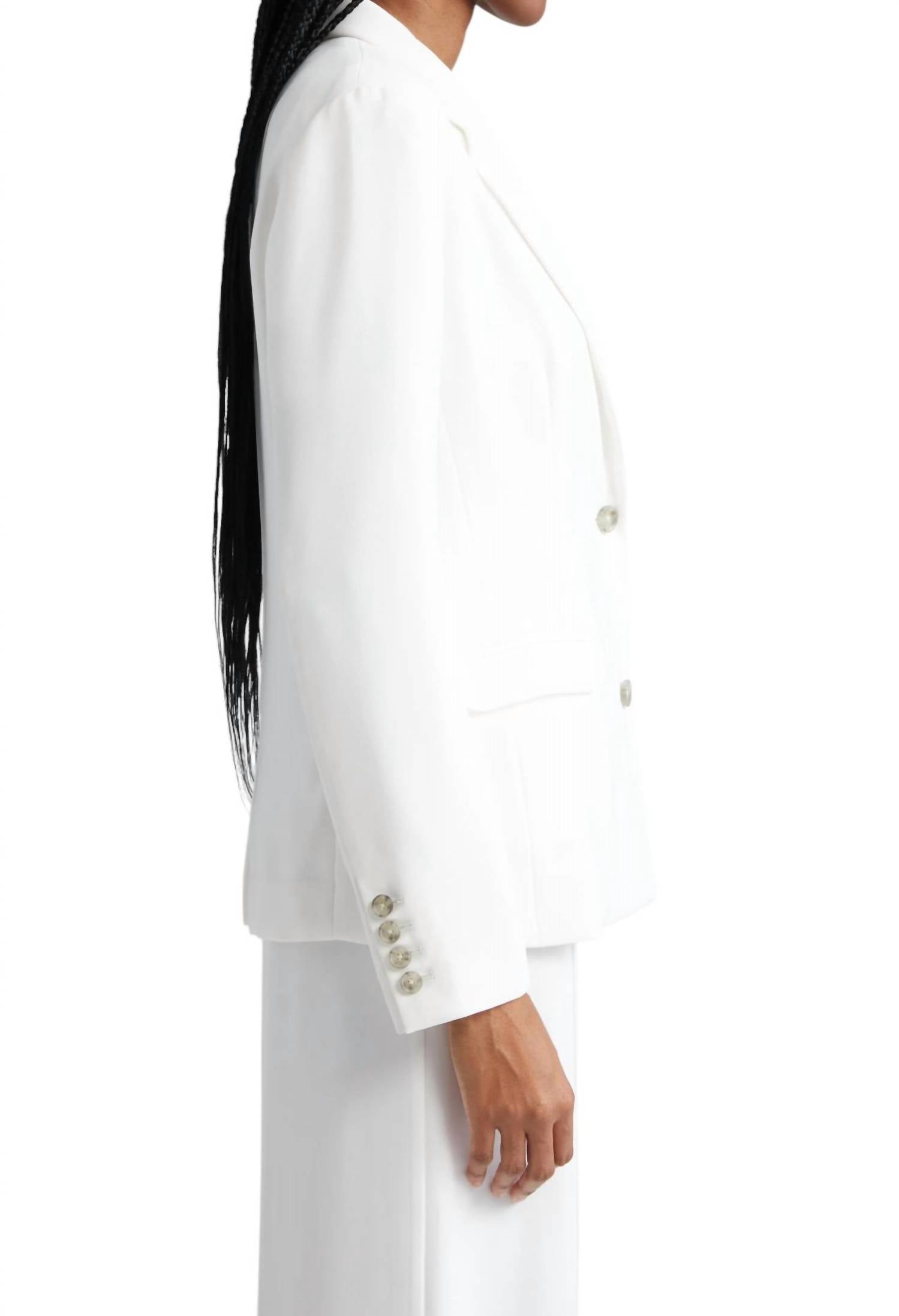 An elevated version of your favorite classic blazer. This Crepe Twill Blazer is a relaxed, straight-cut blazer with long sleeves, a collar neckline, and a button closure. Made from 100% polyester, it includes practical pockets and is machine washable.