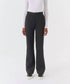 High waisted knit pant with front zip and tab closure. Trouser pocket, two back welt pockets. Long, full leg for a fluid look. 72% polyester, 24% rayon, 4% spandex. Machine wash cold, line dry.