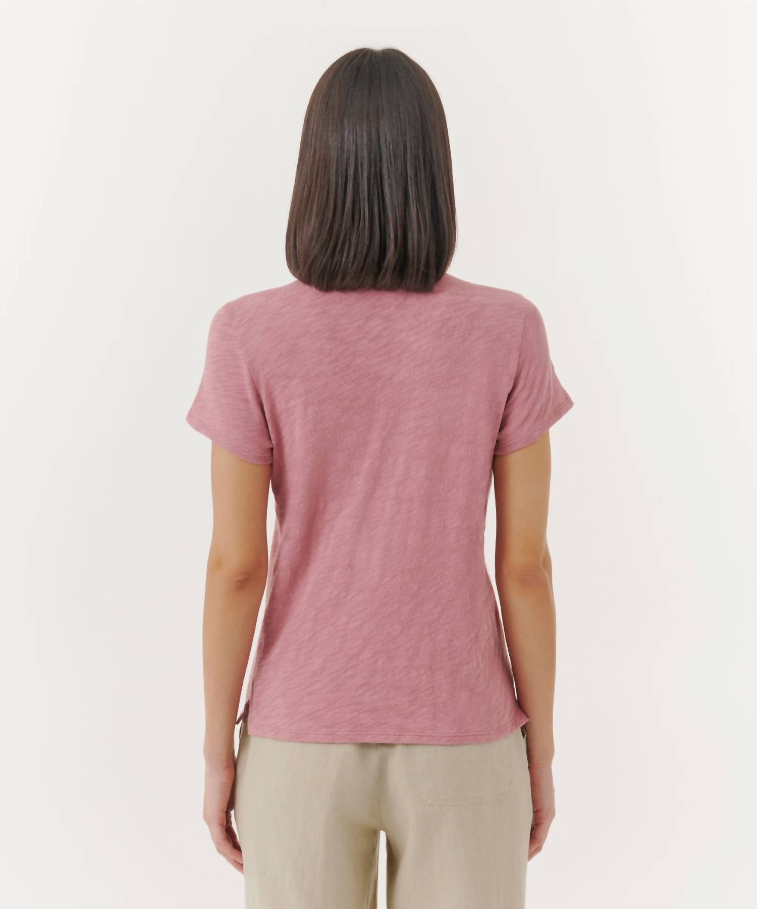 Look no further, you just found your perfect tee!It has a relaxed crew neck silhouette, and a loose weave, fitting the body with the perfectly relaxed drape. Loose weave, slightly shrunken straight. This tee is composed of 100% Cotton. Made in Peru. Hand wash cold recommended or machine wash cold in mesh bag gentle cycle. Do not bleach. Lay flat to dry. Cool iron if needed.