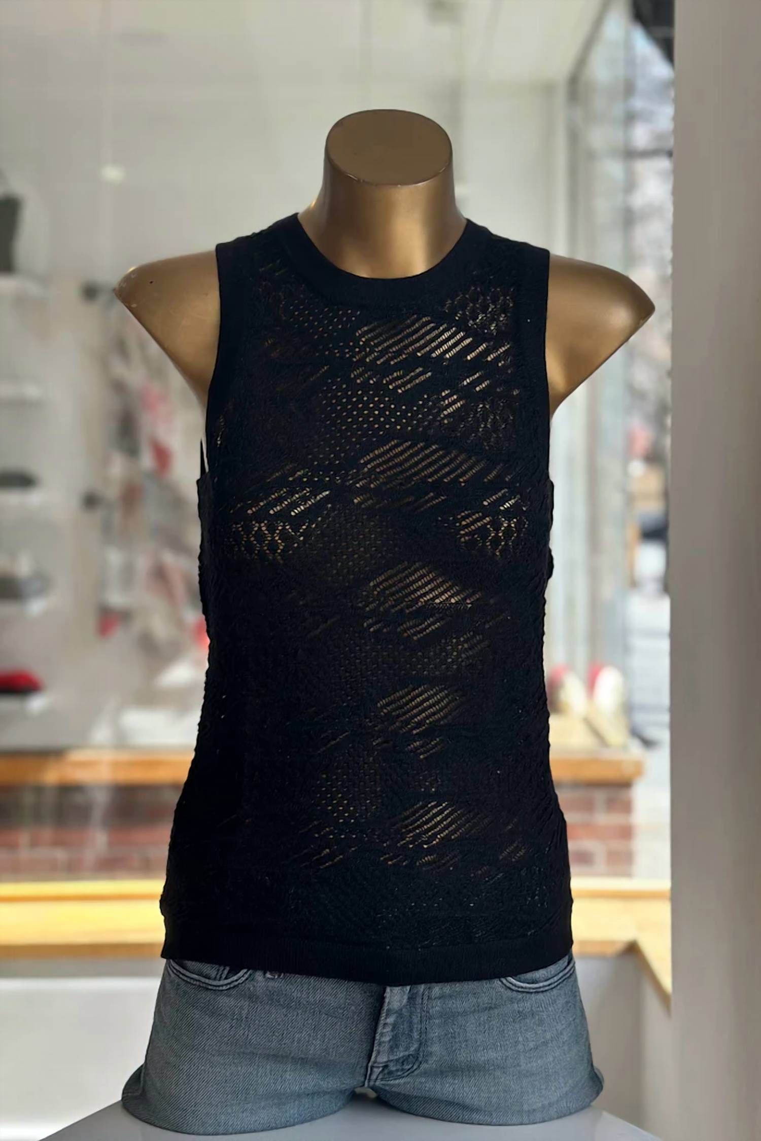 Chic addition to your summer wardrobe, offering the perfect blend of comfort and style. Sleeveless, patterned tank, crafted from a luxurious blend of 60% Tencel, 24% Polyamide, 10% Cashmere, and 6% Polyester, ensuring softness against the skin. Designed with a crewneck and a trendy 90s vibe, pull-on top exudes effortless elegance and is perfect for travel occasions. Care instructions recommend professional dry cleaning to maintain its quality.
