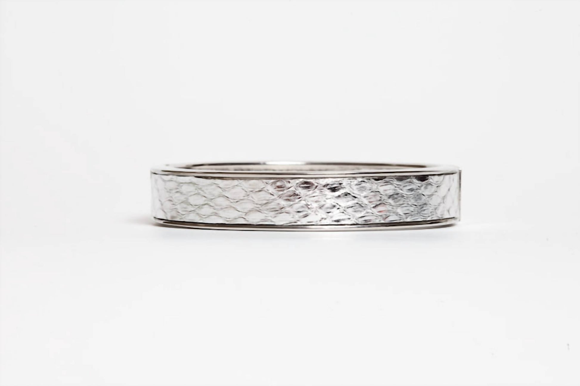 Elevate your accessory game with this exquisite piece boasts a genuine python leather inlay, masterfully set atop a 14kt gold silver-plated hinge, measuring 0.5 inches wide with a 2.5-inch inner diameter. Proudly made in US. Offers a touch of luxury and versatility for any outfit. Mix and match with other colors to suit your mood.