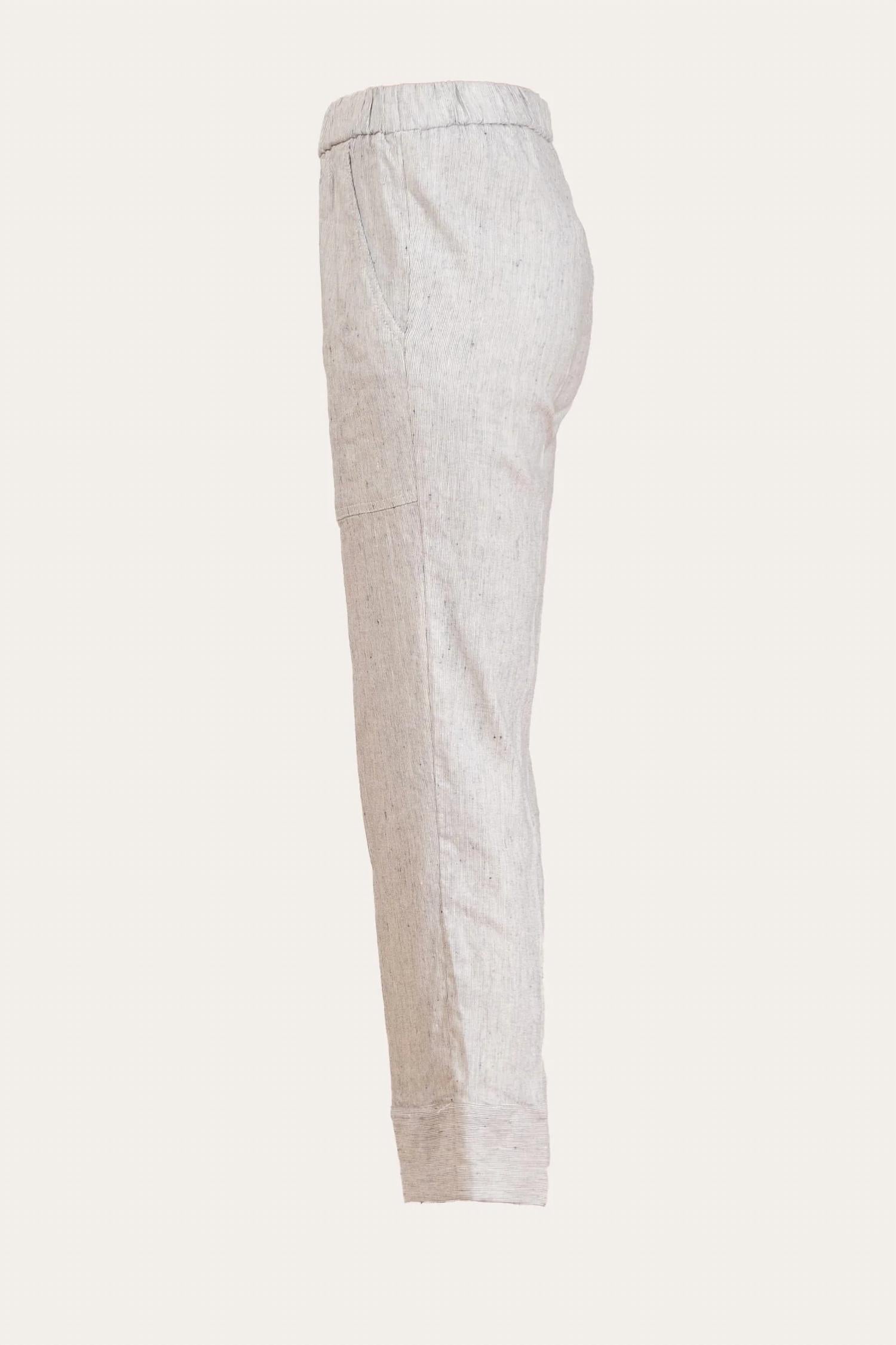 Introducing the Tonic Pants by Avenue Montaigne, an effortlessly chic addition to your summer wardrobe. These cropped, straight leg pants are crafted in 100% cotton, adorned with subtle hairline stripes for a touch of visual interest. With a comfortable pull-on closure and practical exposed front pockets, they offer both style and functionality. Featuring a 25-inch inseam, these pants are ideal for travel and leisurely adventures. Care: Hand wash recommended.