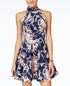B Darlin Junior's Printed Mock Neck Crochet Trim Fit & Flare Dress Navy Size 13/14