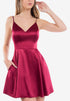You'll want to show off every angle of this satiny B Darlin masterpiece| a ballerina-inspired style that fits and flatters in all the right places. Go on| give it a twirl!| Approx. 24-1/8 long from center back neck to hem. Length is based on size 9 and varies 1/4 between sizes| V-neck with adjustable spaghetti straps; Fit & flare silhouette| Back zipper closure| Satin; hip pockets