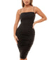 Sizzling with shapely ruching| B Darlin's teeny-strapped tube dress goes out with a party attitude.| Approx. 43 long from center back neck to hem. Length is based on size medium and varies 1/4 between sizes| Fitted through the chest| waist and hips; falls below the knee to lower calf| Square neckline; Bodycon midi silhouette| Zipper closure at center back