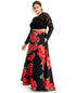 Reimagine a special evening or prom night in B Darlin's two-piece plus size dress that combines a sparkling sequin lace top with a vibrant floral-print skirt.| Approx. 63 long from center back neck to hem. Length is based on size 16W and varies 3/8 between sizes| Floor-length formal dress with a skirt that flares from the waist | Lace; Delicate and light texture| Jewel neckline; Ball gown silhouette| Button closure at back neckline; zipper at skirt back| Pockets at skirt side seams