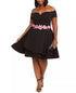 Approx. 31" long from center back neck to hem. Length is based on size 15 and varies 3/4" between sizes|Sweetheart off-the-shoulder neckline; Fit & flare silhouette|Back zipper closure|Bra cups; floral appliqu茅 at waist; double layer flounce hem|Shell: polyester/spandex; lining: polyester|Hand wash