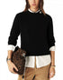 Embrace sophisticated style with the Doel Straight Cut Sweater by ba&sh, crafted for the modern woman. This elegant black sweater features long raglan sleeves and a round collar adorned with a jewel-style button for a touch of elegance. Material: Recycled Wool. Closure: Pull on. Care: Machine wash. Perfect for a chic dinner party or a Thanksgiving gathering, this sweater aligns with the maximalist trend, making it a versatile addition to your wardrobe.