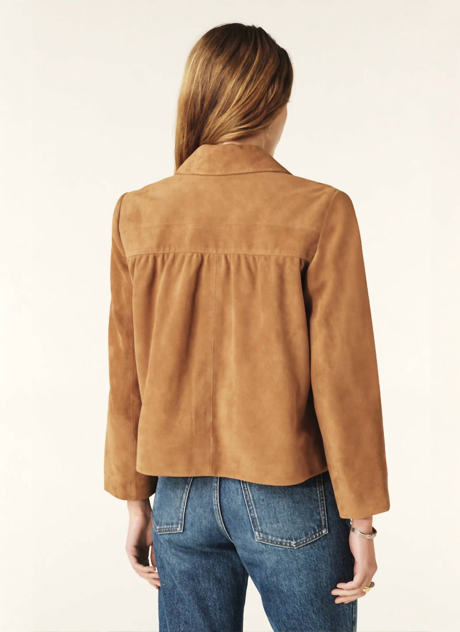 Soft leather, impeccable design. This leather jacket is a win-win. Introducing the Mila Suede Leather Jacket by ba&sh, a sophisticated addition for your wardrobe in a rich brown. This women's jacket features long sleeves and is crafted from 100% faux leather, offering a stylish yet ethical choice. Closure: Button closure. Care: Machine wash. Ideal for spring workwear or a chic engagement look.