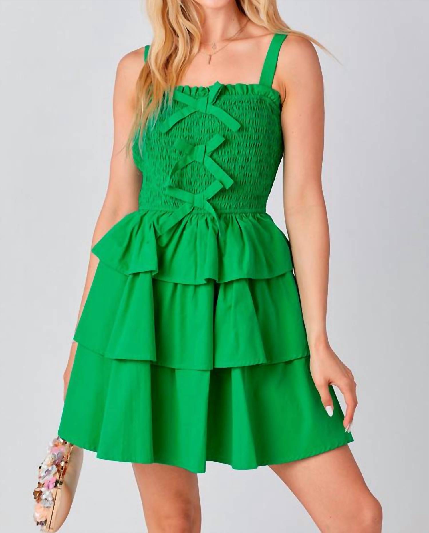 Baby Pink - Allison Smocked Bow Tiered Mini Dress