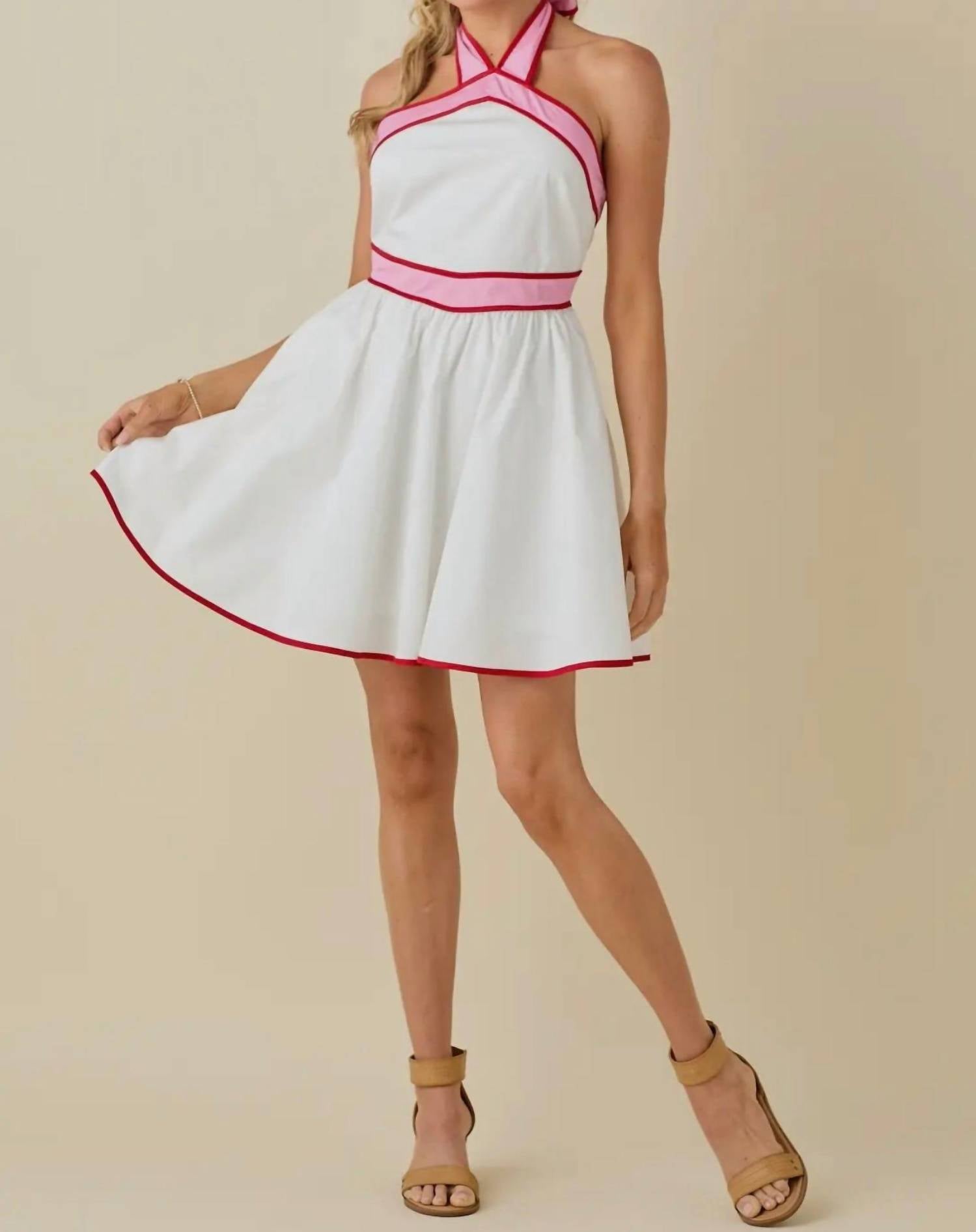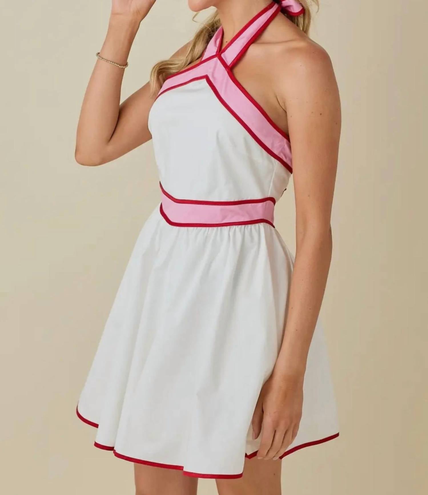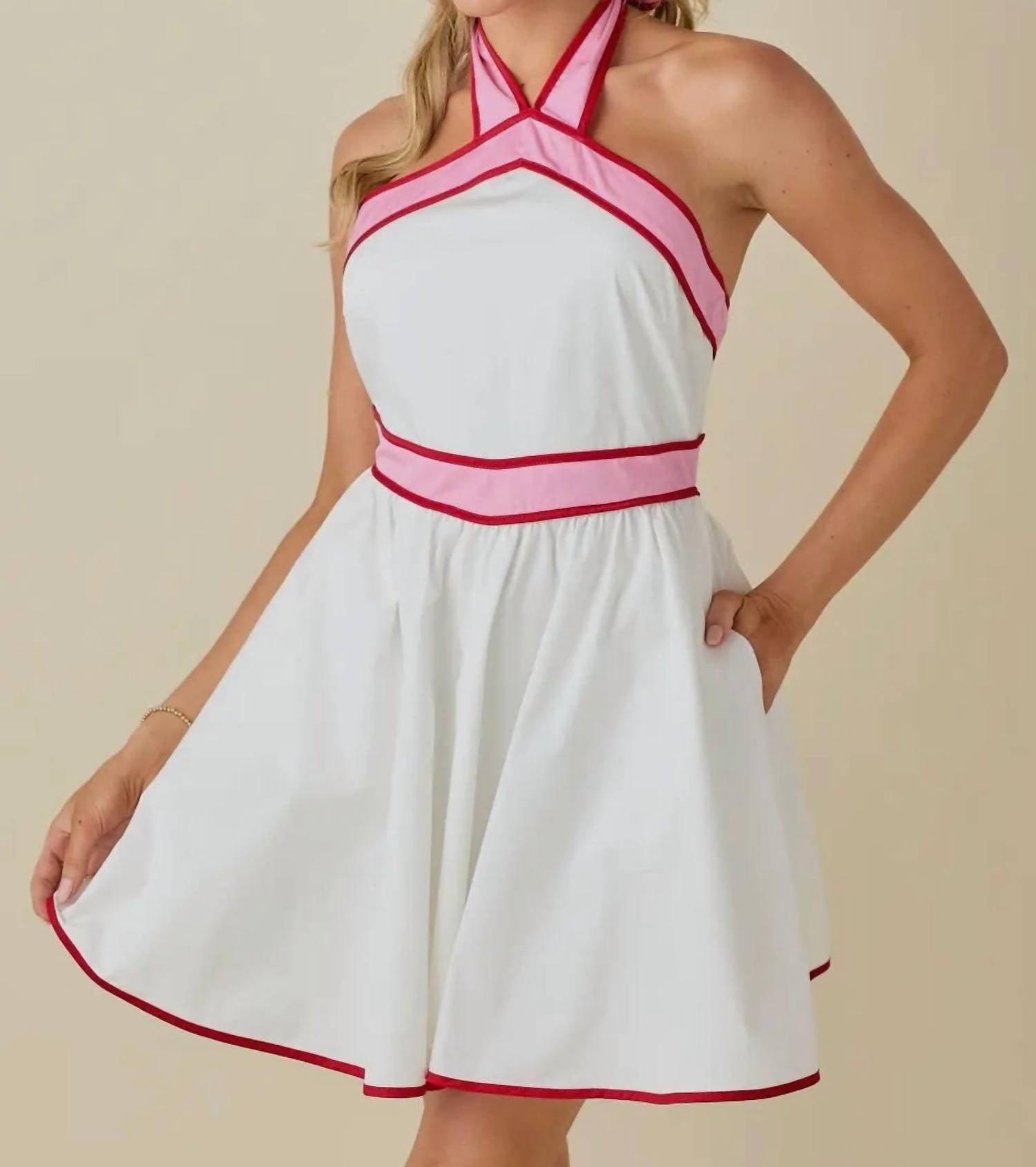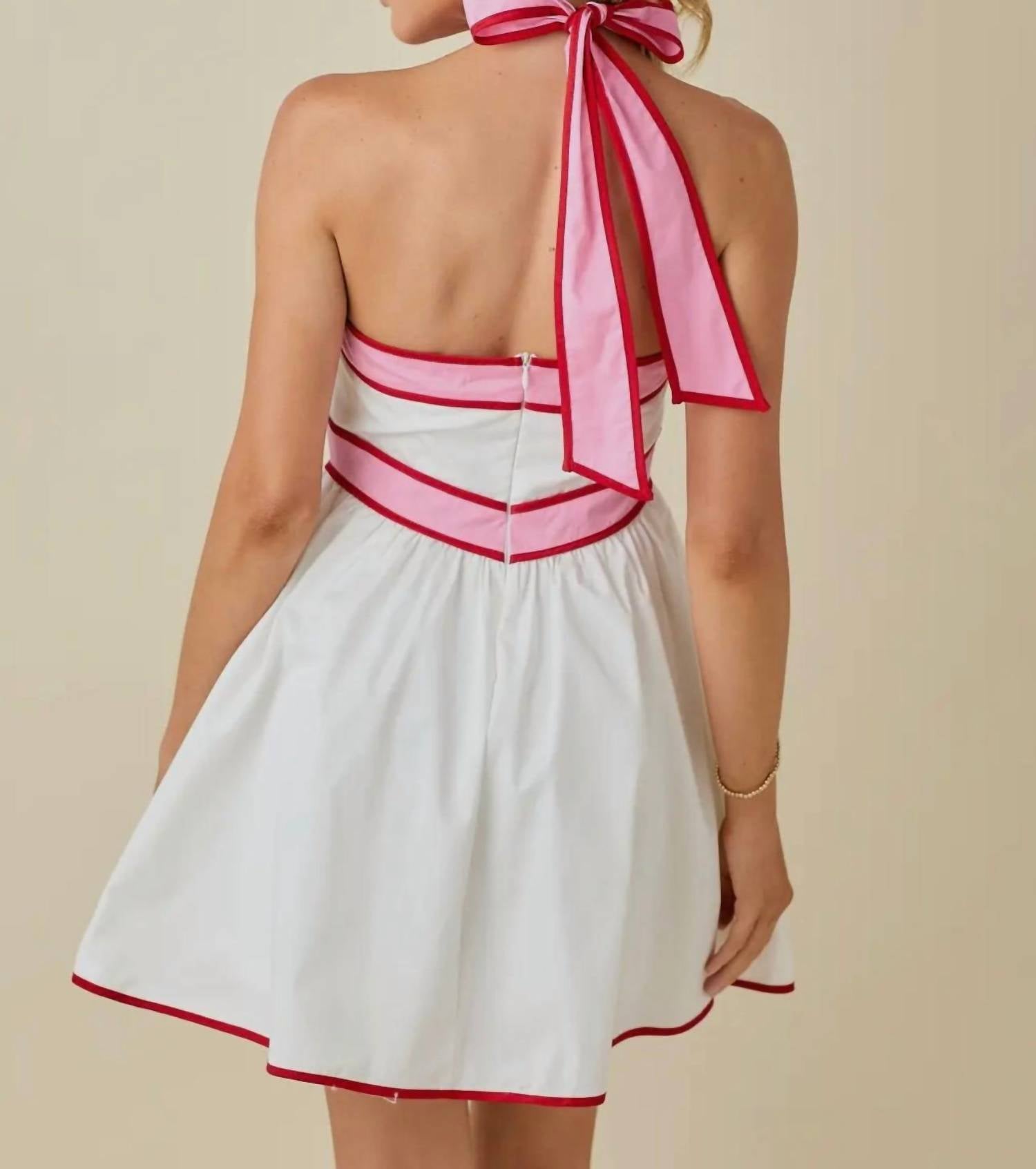 Baby Pink - Colorblock Strap Design Halter Neck Mini Dress