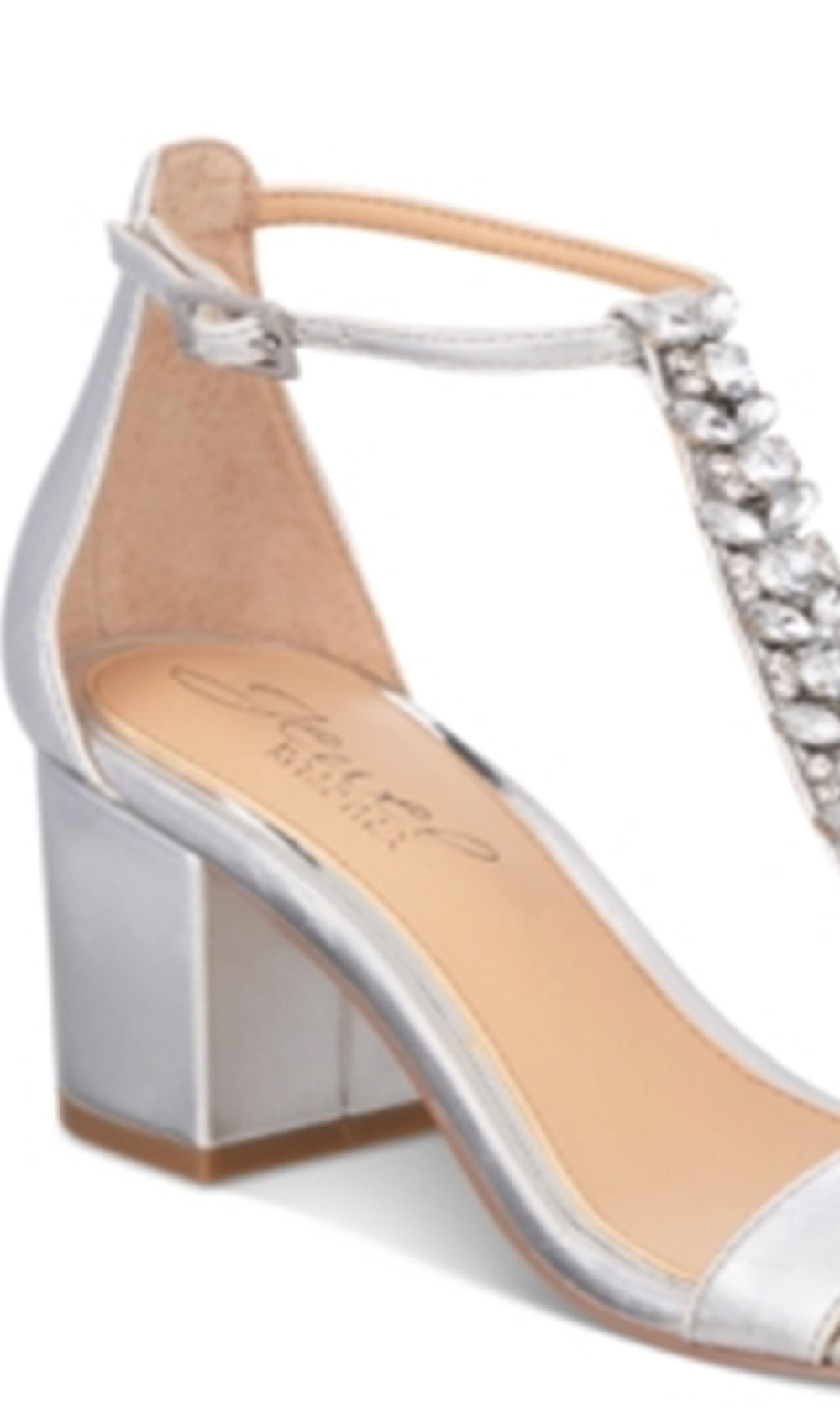 Badgley Mischka Women's Ankle Strap T-Strap Rhinestone Lindsey Round Toe Block Heel Buckle Dress Sandals Gray Size 6 M
