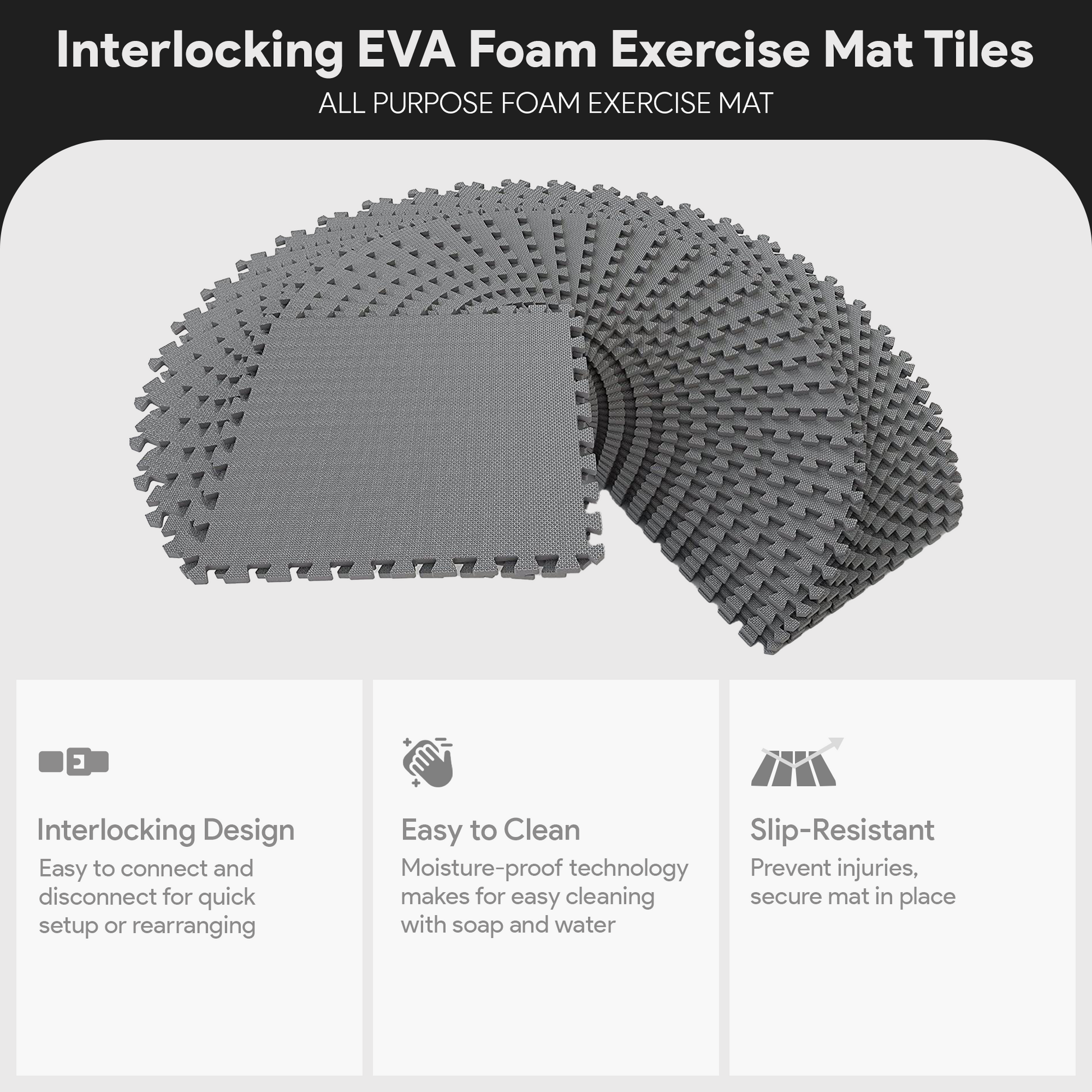 BalanceFrom Fitness 144 Sq Ft Interlocking EVA Foam Exercise Mat Tiles, Gray