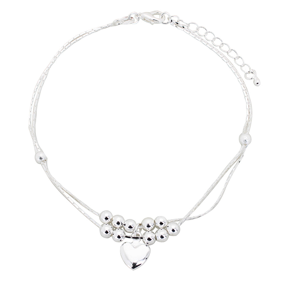 Ball and Heart Adjustable Anklet in 14k White Gold