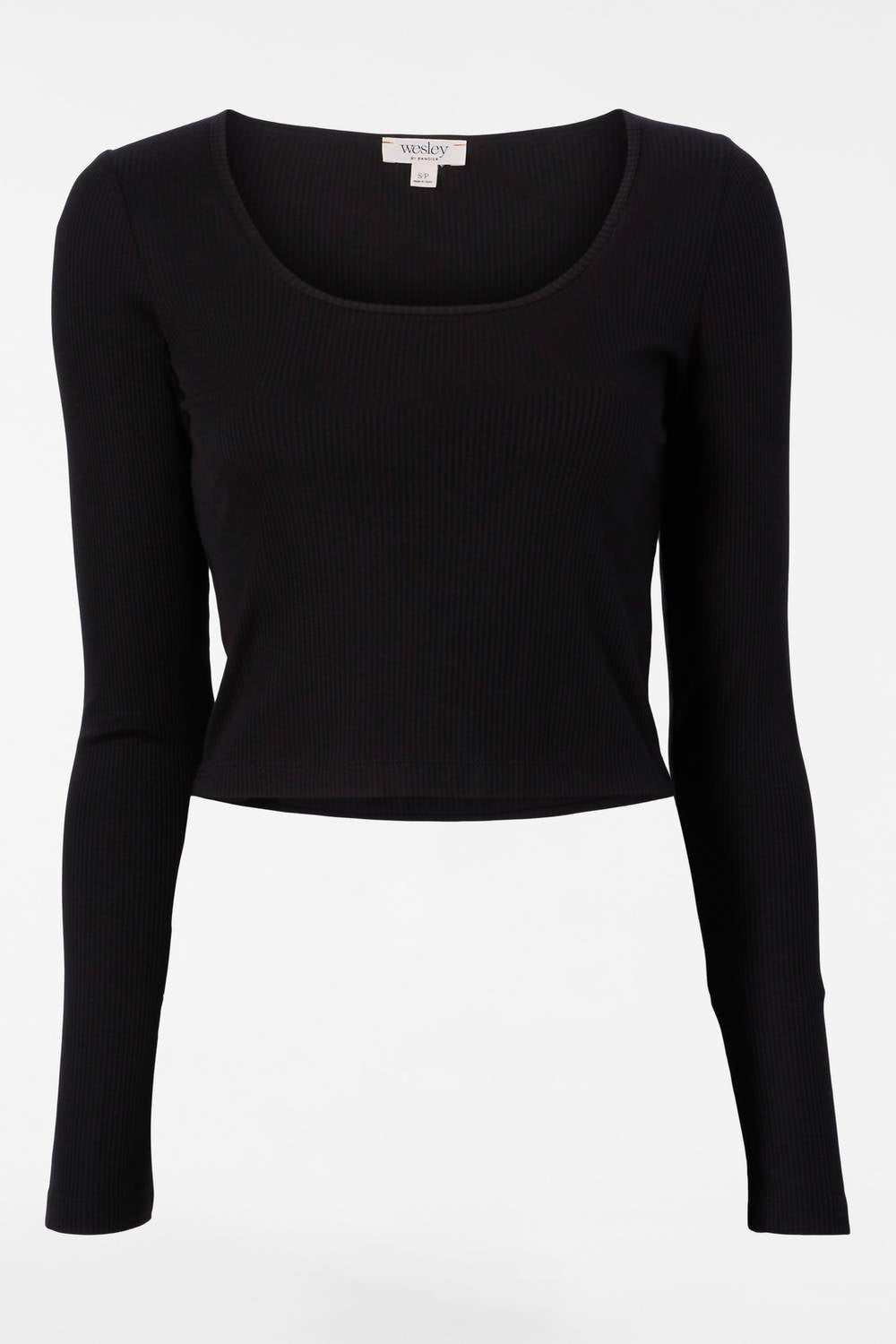 The perfect long sleeve tee that goes with just about anything. Elevate your look with the Rivington Ribbed Long Sleeve Scoop Neck Crop Top by BANDIER, a standout in minimalist style. This solid white crop top, measuring approximately 20 inches in length and 16 inches in width, is crafted from 95% Tencel and 5% Spandex for a form-fitting silhouette. Its long sleeves and scoop neck add sophistication, complemented by a convenient pull-on closure. Care instructions include machine wash cold and tumble dry low, making it perfect for casual or vacation wear.