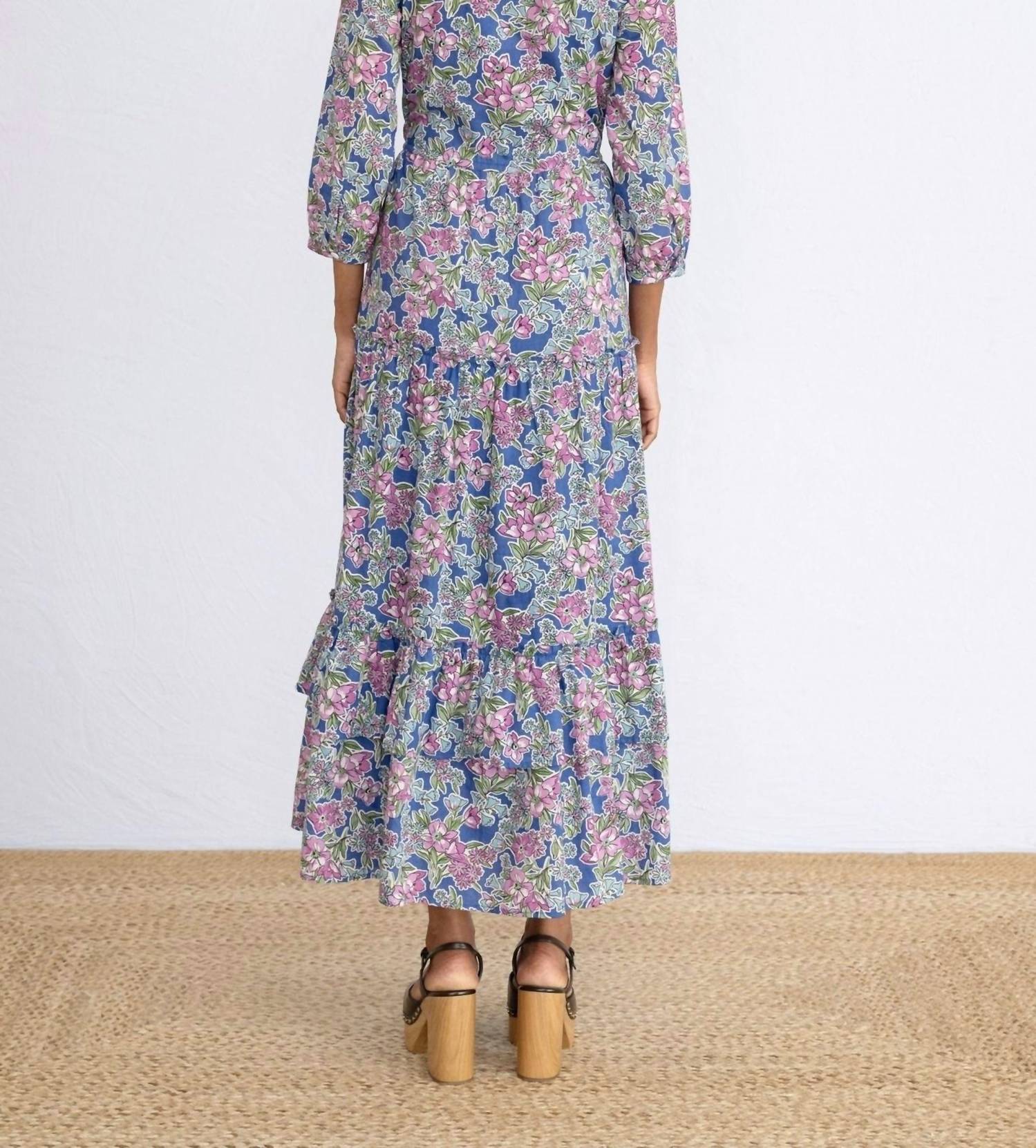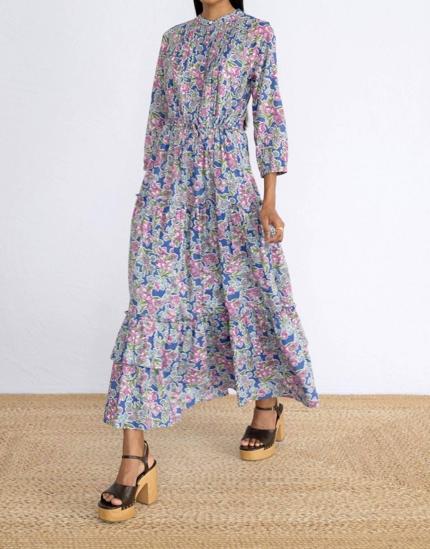 Style this maxi with your favorite statement necklace and sandals for the perfect look. Discover the exquisite Bazaar Maxi Dress by BANJANAN, a perfect blend of elegance and practicality in dazzling Arcadia blue floral. Crafted from 100% cotton, it features long sleeves and a tiered A-line silhouette falling gracefully to the ankle, complete with a drawstring self-belt and convenient side seam pockets. Made in India, this fully lined dress is designed for ultimate comfort, ensuring a true-to-size fit. Care for it effortlessly by machine washing cold with like colors, line drying, and ironing warmly as needed.