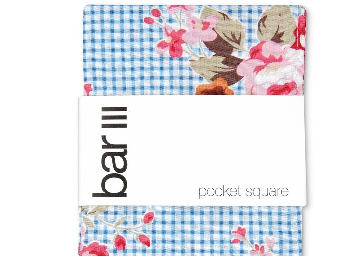 Bar III Men's Blossom Gingham Pocket Square Navy Size Regular