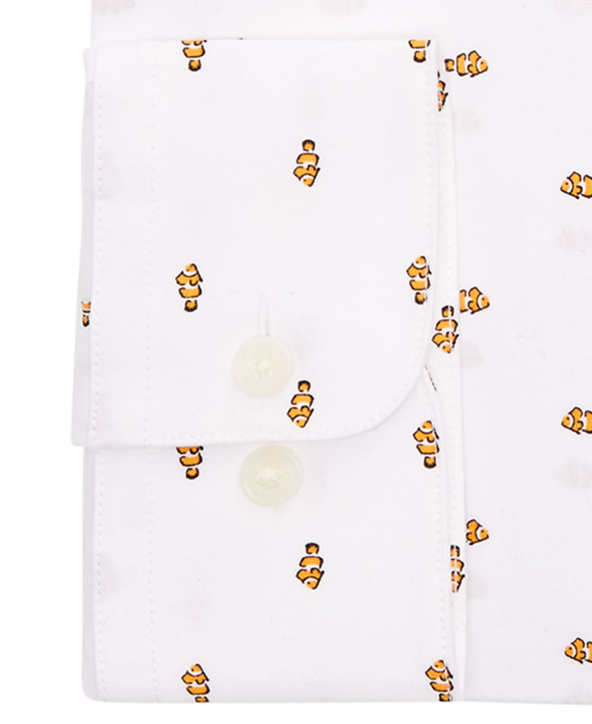 Inject a little humor into the workweek with this fun look from Bar III| a slim-fitting dress shirt in Easy Care all-cotton fabric decorated with clown fish.| A slim fit is cut closer through the chest| sleeves and waist; features slim armholes and sleeves| Spread collar| Button cuffs| Easy Care fabric