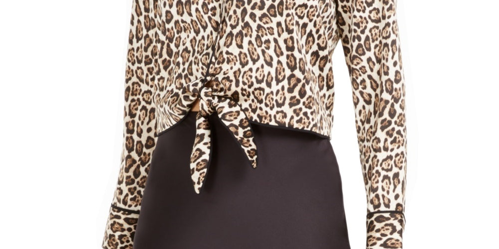 Relaxed fit; approx. 20" long|Shirt collar; button closure at front with tie at waist|Long sleeves with button cuffs|Polyester; buttons: resin